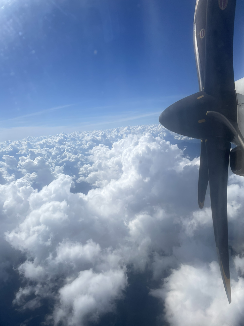 공항 도착, 그리고 기다림. 슬금슬금 오는 비행기에 프로펠러가 달려있다. 그리고 그 비행기 말고 다른 건 없다. 단거리는 창 밖을 보고 싶어서 창가석을 달라고 했는데, 좌석을 대충 계산해 보니 내 자리가 어디일지 알쏭달쏭. 왠지 프로펠러 언저리일 것 같았는데 아니나 다를까…