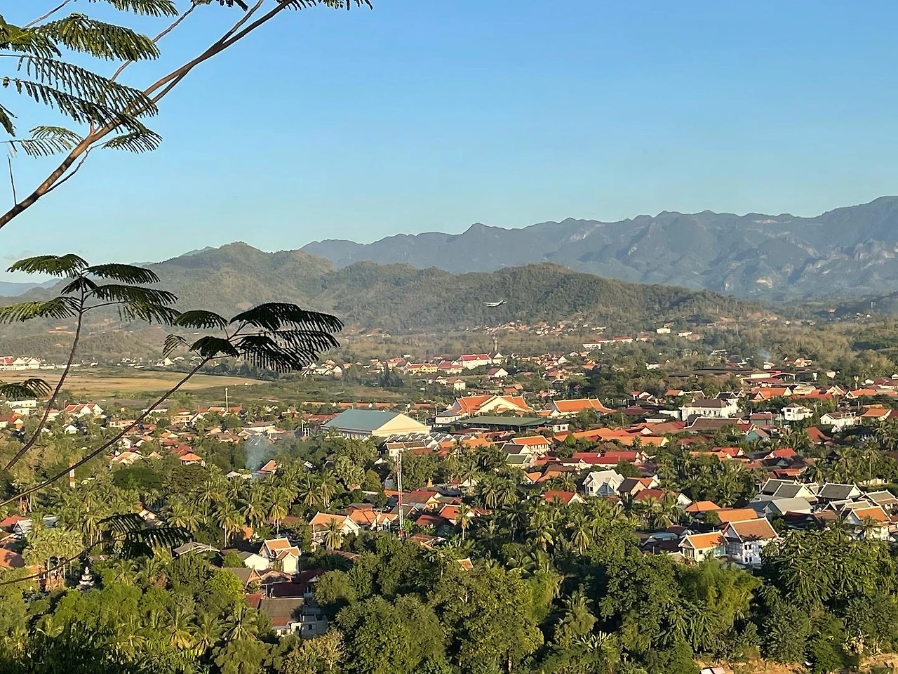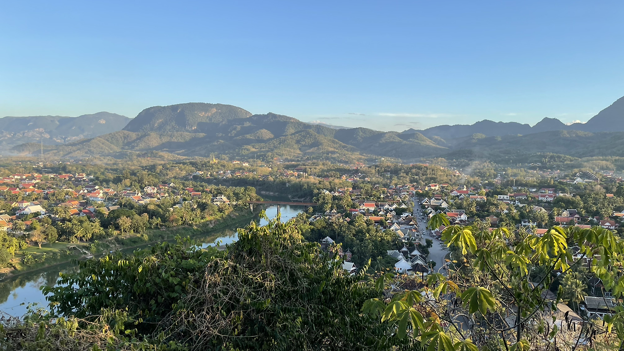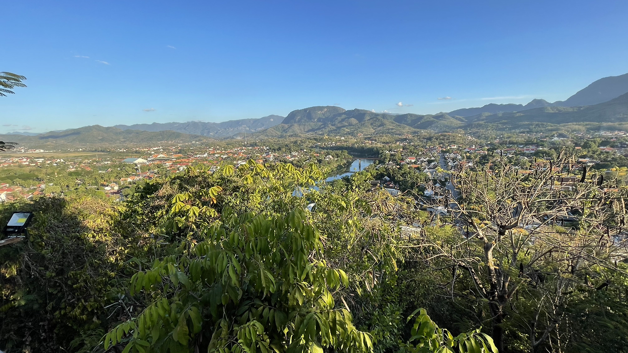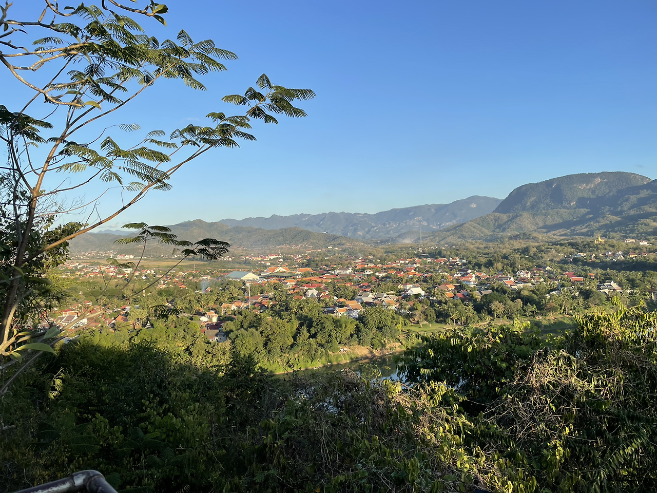 한눈에 내려다보이는 루앙프라방 전경. 내가 머물고 있는 야시장이 있는 거리 반대편이 눈앞에 펼쳐진다. 내가 다니고 걷고 했던 길이 전부가 아니었고, 그 거리는 하나의 길에 불과했다. 반대편의 높은 산이 경계가 되어 감싸는 그 안으로 다양한 집이 곳곳에 들어서 있다.
