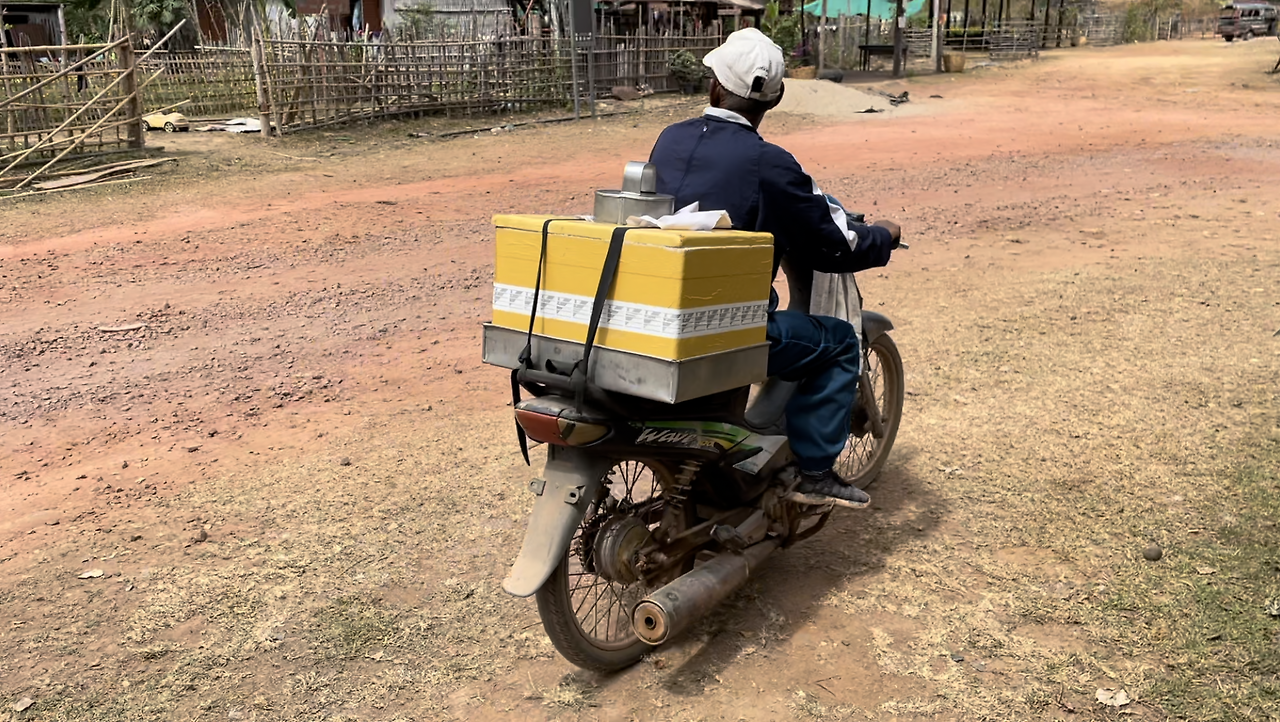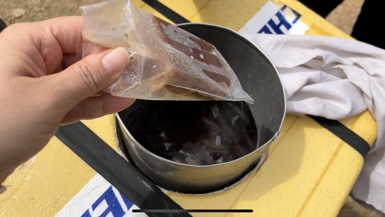 계단을 내려가서 아이스께끼 아저씨를 보니 나이 지긋하고 미소를 머금은 할아버지가 오토바이 뒷자리에서 은색 원통을 감싼 스티로폼 박스를 매달고 나를 기다린 채 서있다. 원통 위의 뚜껑을 열어보니 색색의 음료수를 하드 얼리는 통에 붓고 거기에 아이스크림 작대기를 넣어 직접 얼린 것 같은 게 포장 없이 원통 안에 누워있었다.