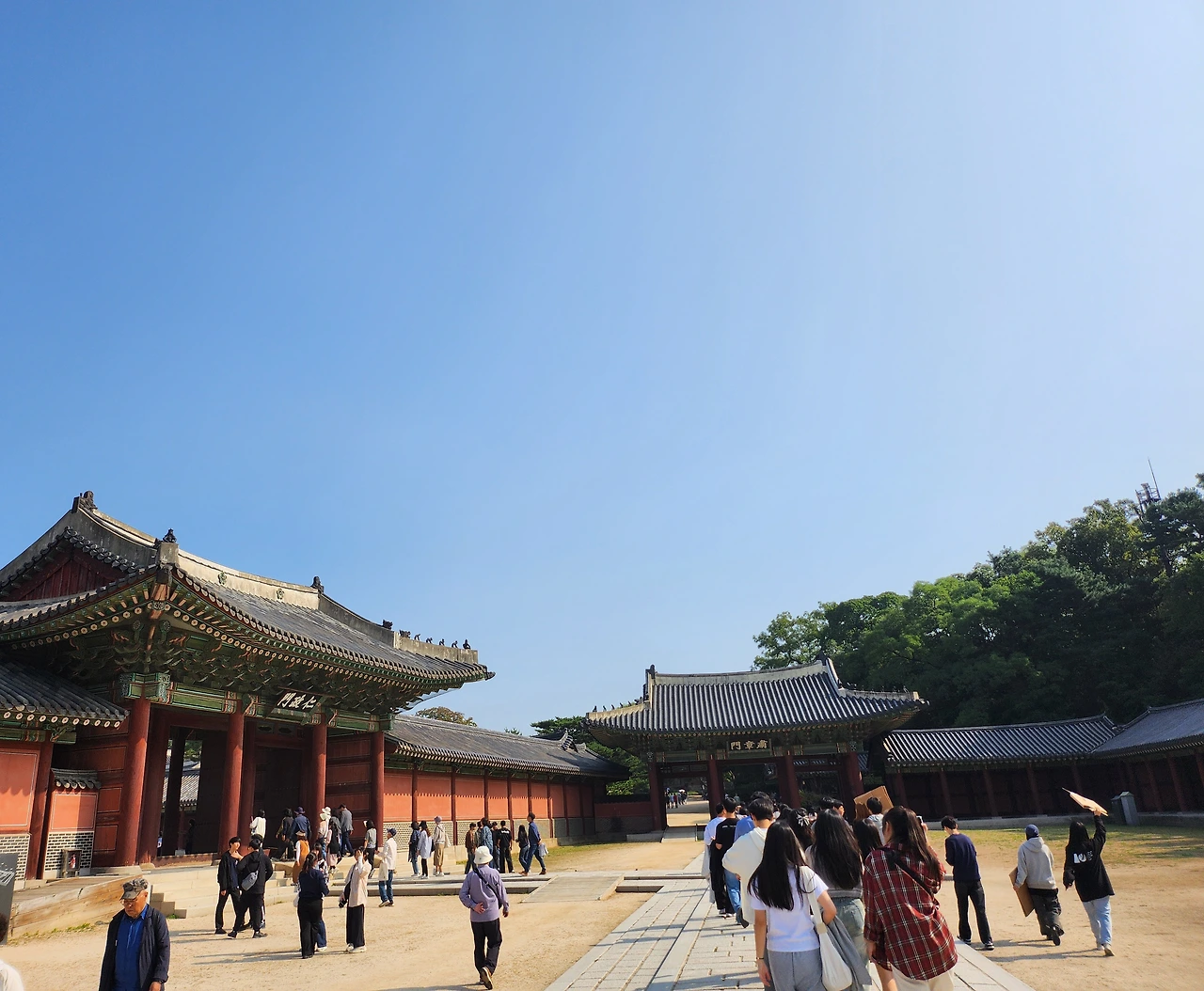 리허설이 끝나고 음악이 사라지자 갑자기 세상의 색깔이 무채색으로 바뀐 느낌이 들었다. 평일의 창덕궁과 창경궁에는 외국인 관광객들이 한복을 입고 투어를 하고 있다. 아이들이 체험학습으로 궁궐을 채우자 비로소 궁궐의 기와며 나무들까지 빛났다. 서너 명씩 조별 활동을 하며 궁궐의 과거와 현재를 연결하는 유일한 존재는 바로 이 아이들이다.