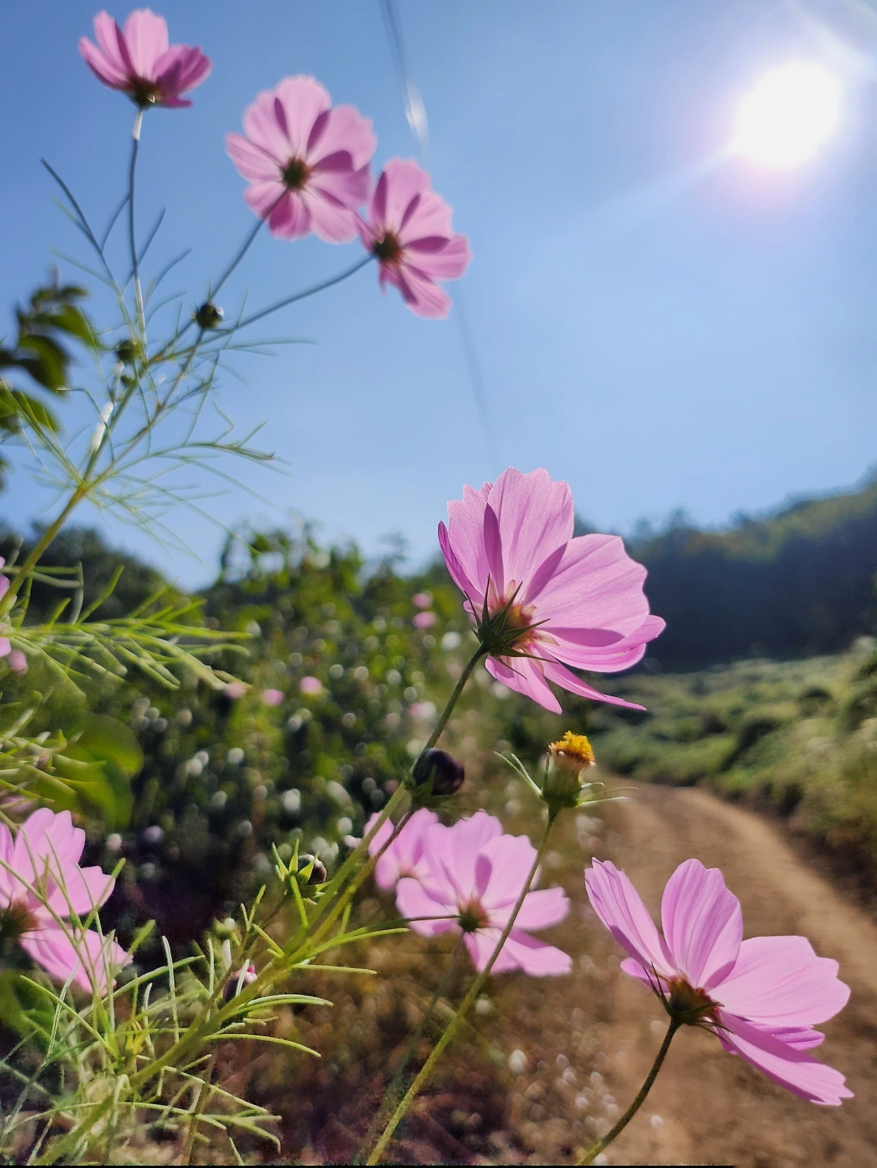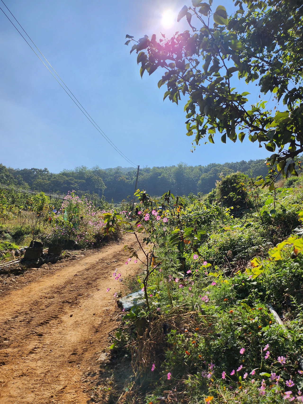 배밭이 있는 산 입구 아래는 포크레인이 부지런히 땅을 고른다. 무엇을 하려고 길을 닦는지는 모른다. 배밭과 관련이 있는 것이 분명해 보인다. 산의 입구, 이 길은 누군가의 소유지라 산을 오를 때마다 빨리 지나가고 싶어 진다. 가을꽃 코스모스가 무심하고 아름답게 피어있다. 어디에서도 만나지 못할 투명한 분홍빛 꽃잎은 고단하고 유한한 삶의 비밀을 바람에 흔들릴 때마다 전해주는 것 같다.