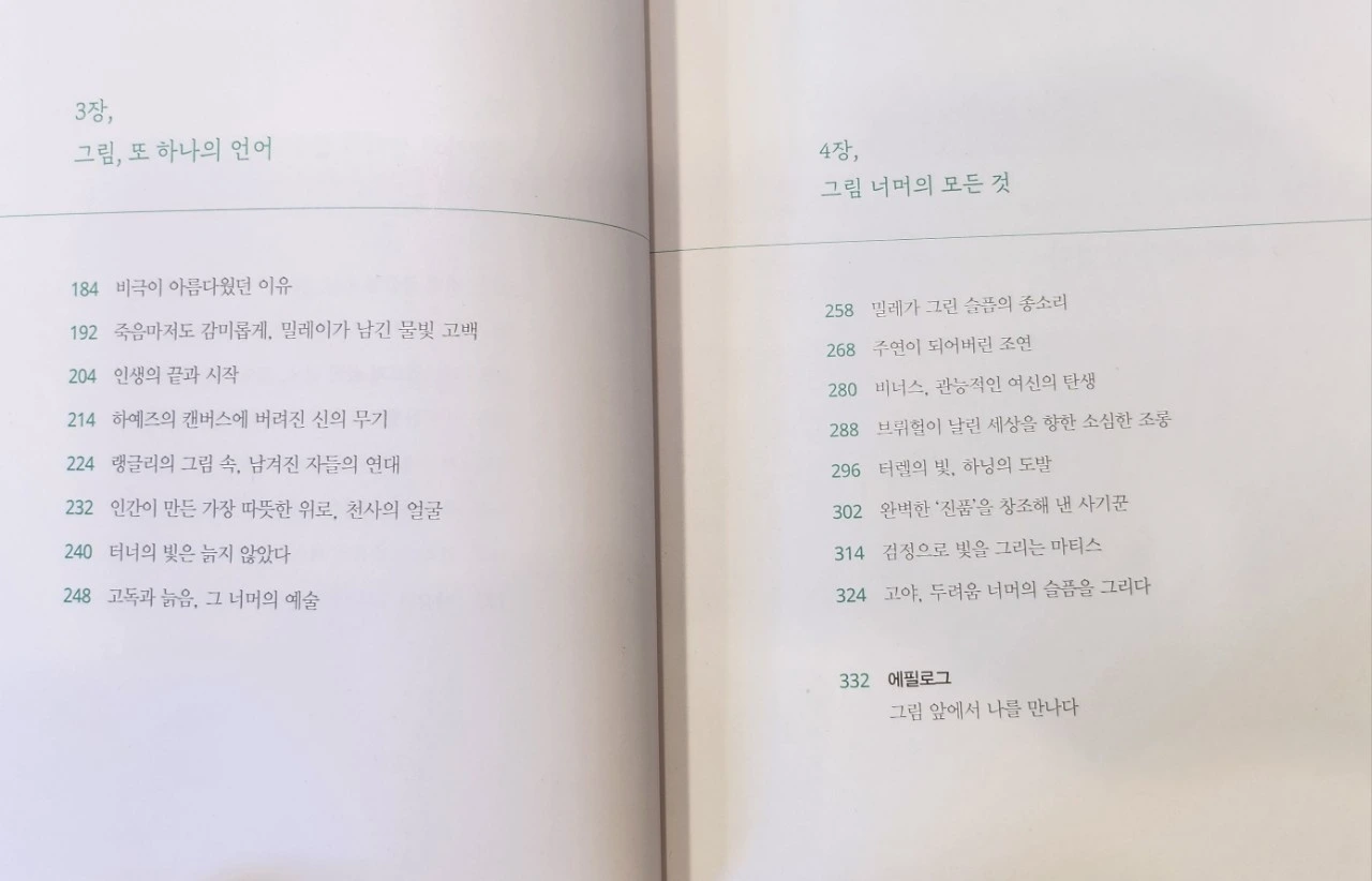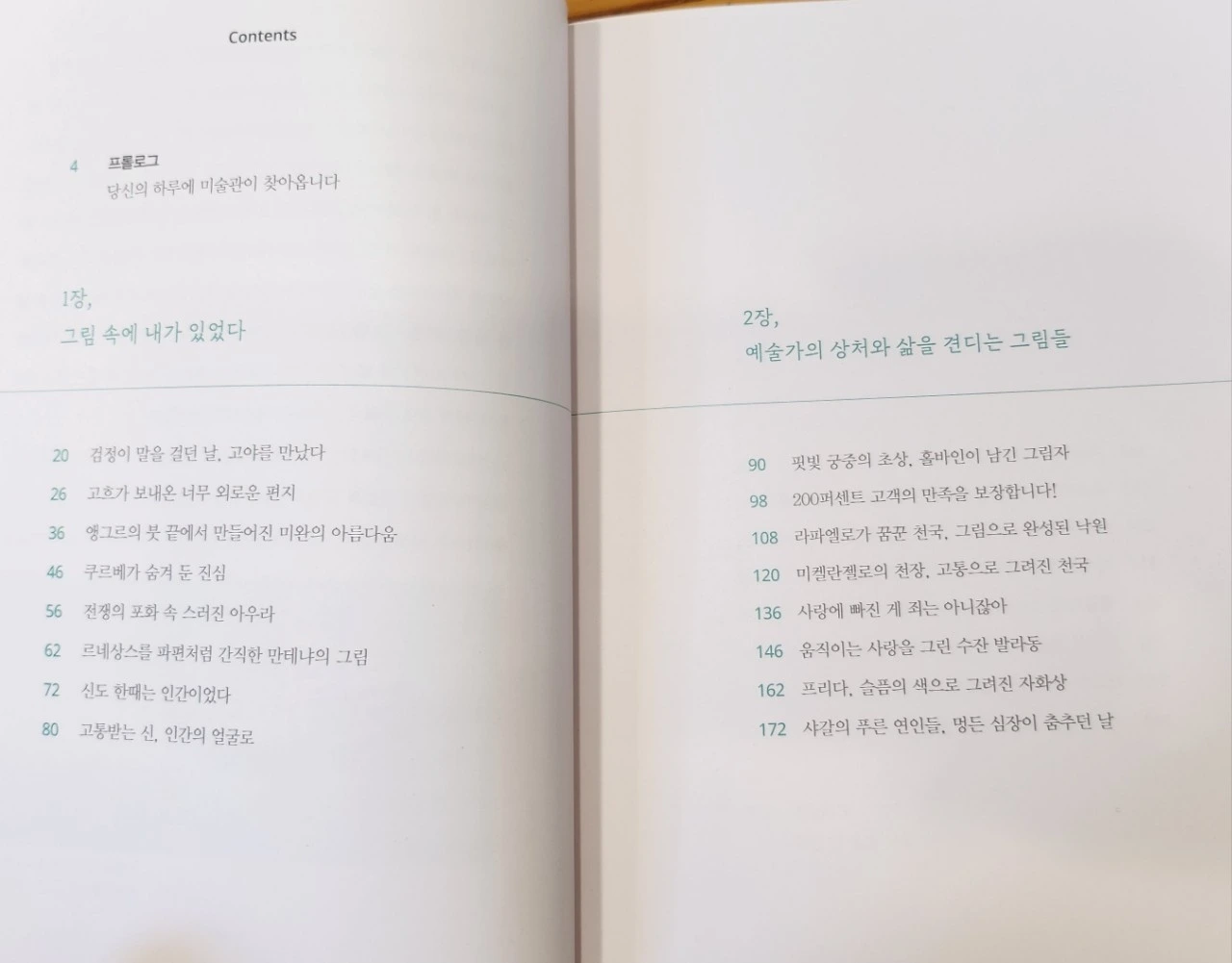 그림이 말을 걸어오는 순간이란 이런 때일까. 이수정 작가님은 이 책에서 어떤 그림을 말해줄까. 이 책에는 4개의 꼭지에 32개의 이야기가 펼쳐져 있었다.