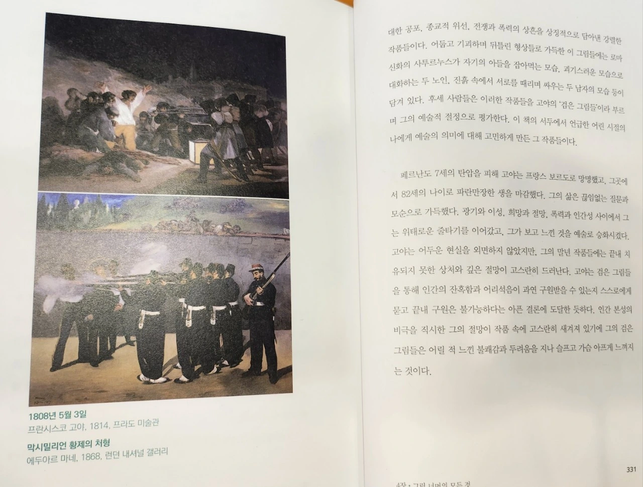 고야는 어두운 현실을 외면하지 않았지만, 그의 말년 작품들에는 끝내 치유되지 못한 상처와 깊은 절망이 고스란히 드러난다. 331쪽