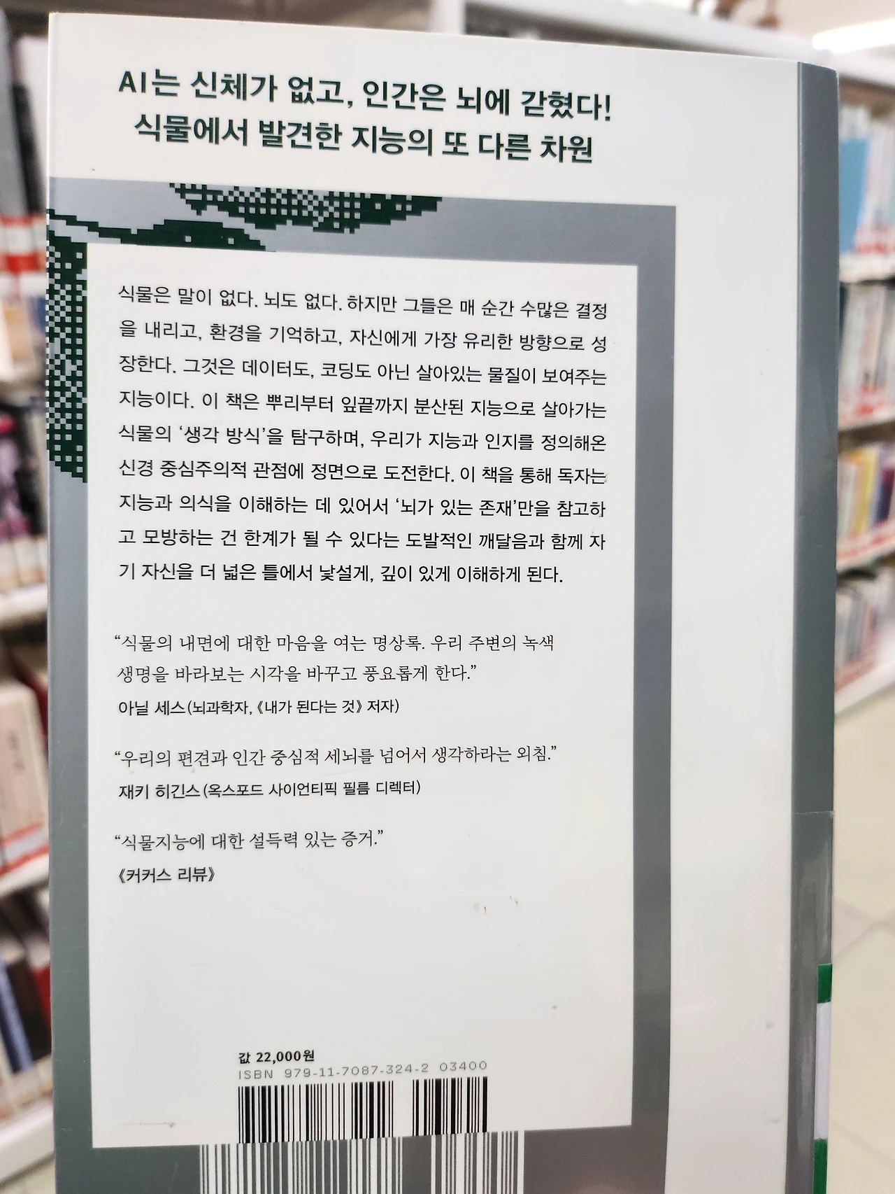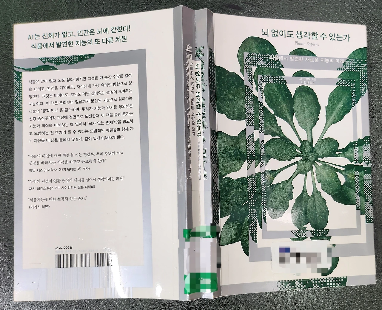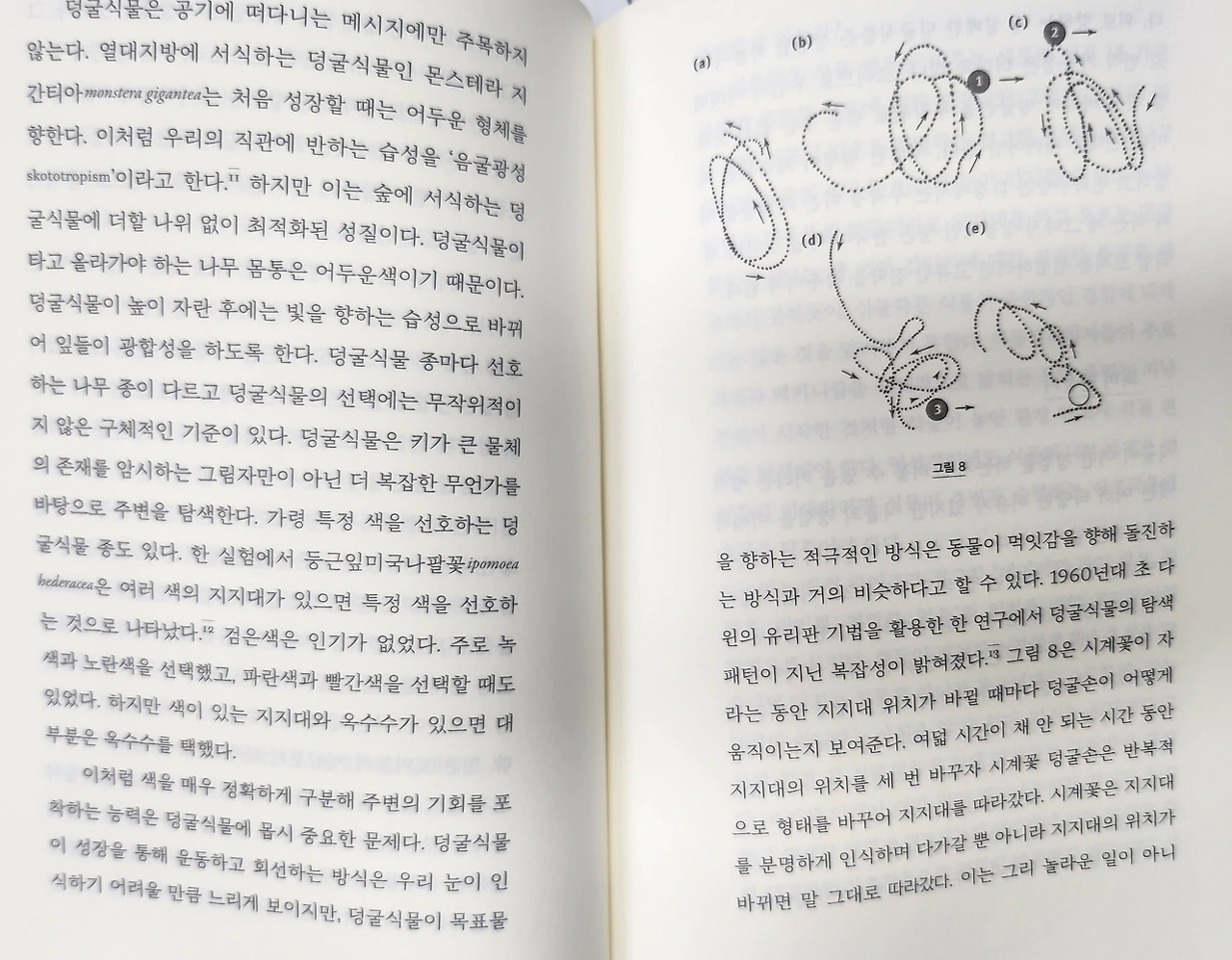 그는 인간이 세상에 대한 담론을 개별적 경험을 기반으로 결론지으려는 성향에 대해서 이에 따라 인간이 지혜롭기는 하지만 편협할 수도 있다는 점을 서문에서 말하고 있다. 나는 이 부분을 보면서 이 과학철학자가 말하고자 하는 초월적 존재에 대해 조금 더 알고 싶어졌다. 책의 표지에 있는 초록의 존재인 식물의 지혜에 대해서.