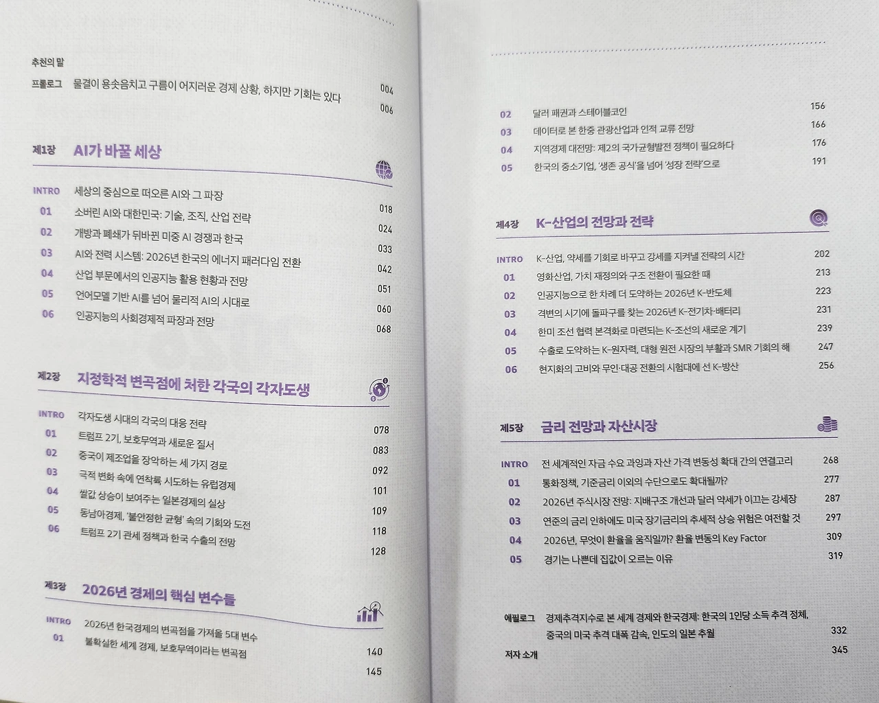이 책은 경제에 관심이 많은 사람, 한국경제를 전반적으로 알고 싶은 사람, 경제를 공부하는 사람과 2026년을 성공적으로 살고 싶은 사람에게 권한다.