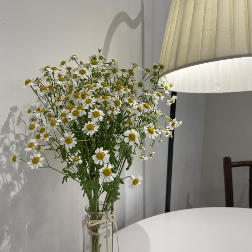 소담한 매력이 가득한 꽃 '마트리 카리아'가 그날 화병에 꽂혀 있었다.