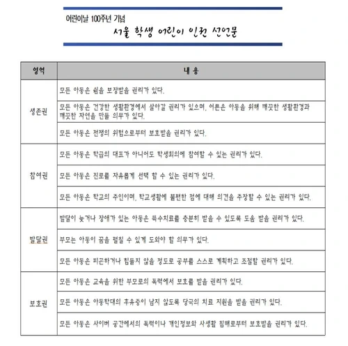 대한민국의 아이들은 이 권리들을 모두 보장받고