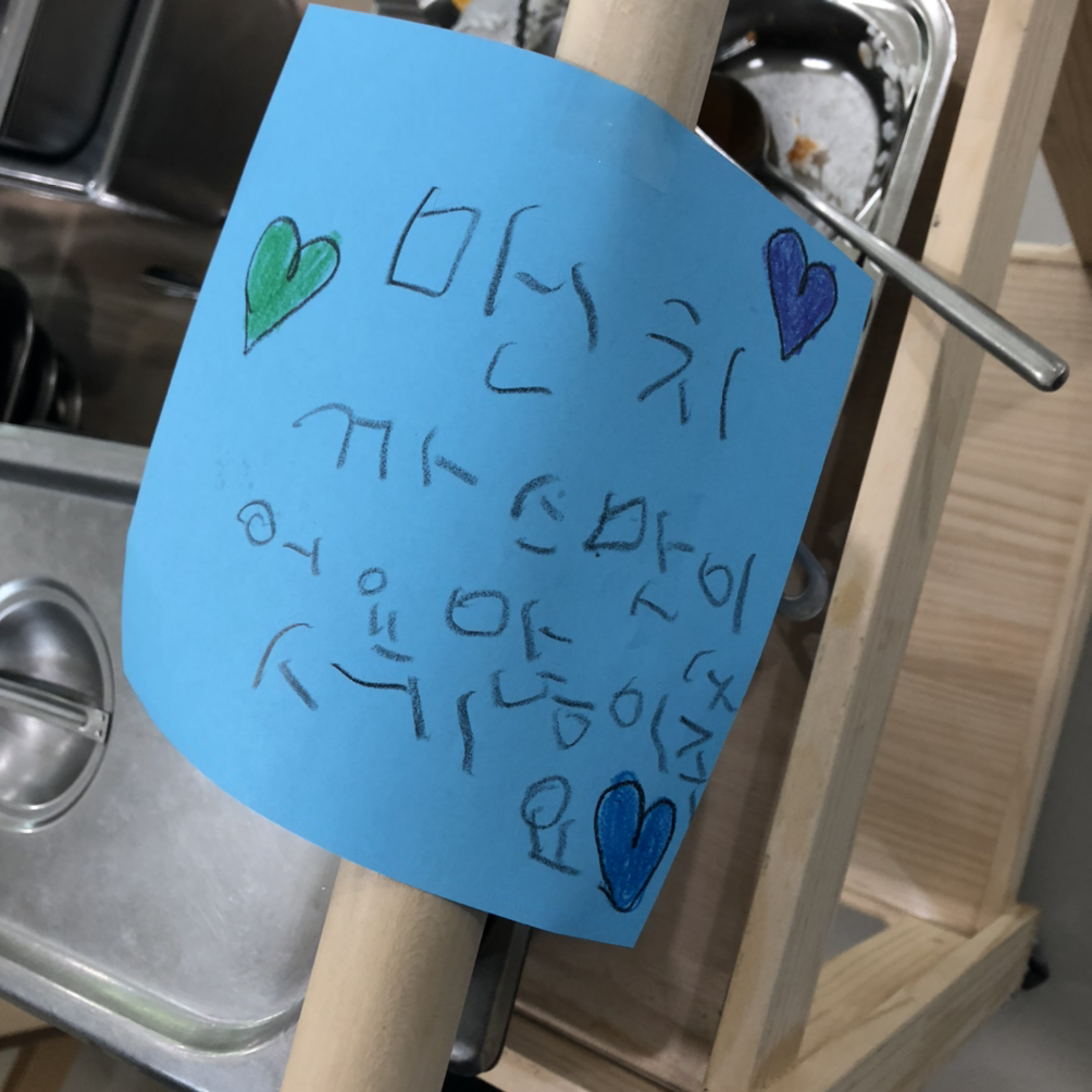 이내 아이들이 다가와서는 조리사님께 편지를 쓰겠다고 했다.