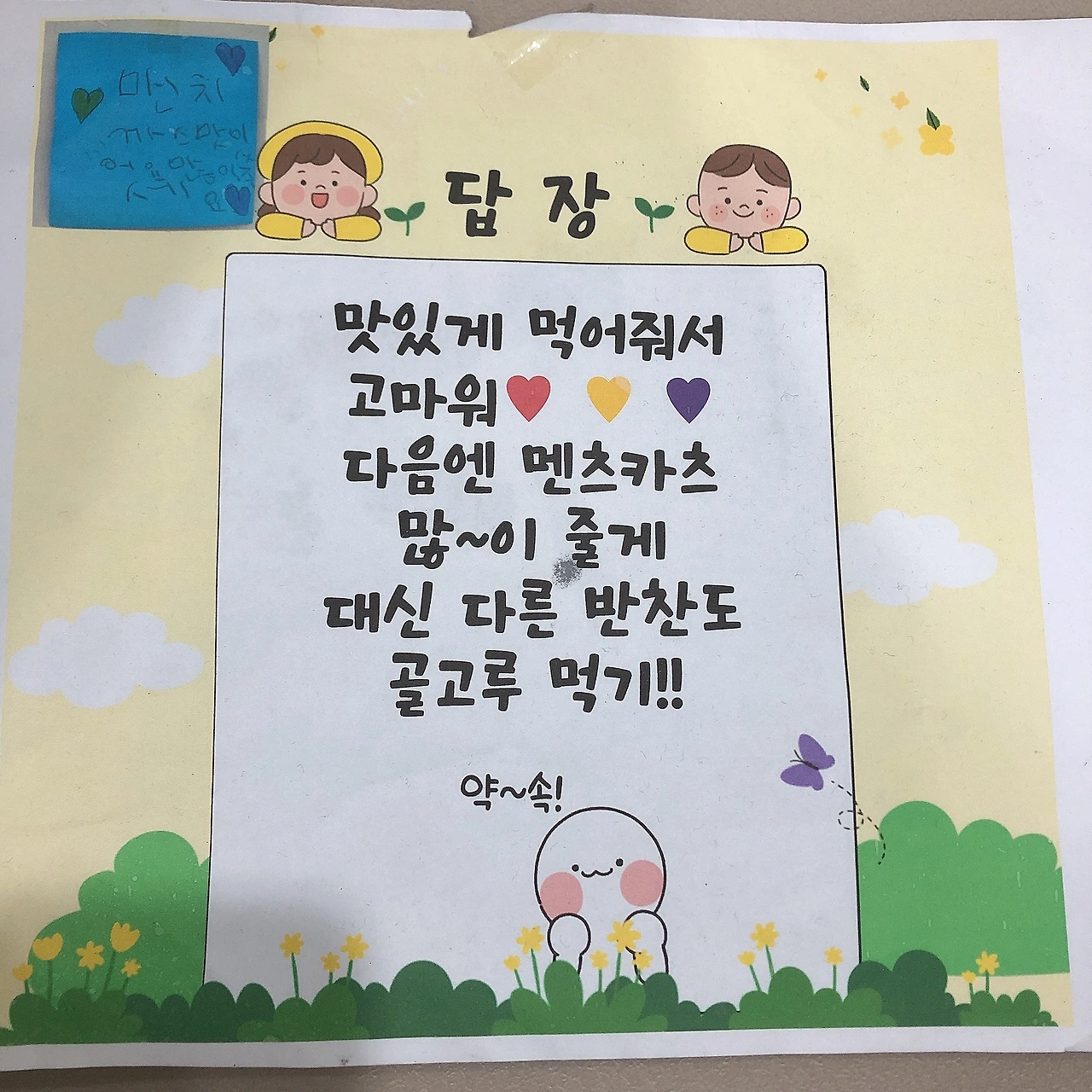 다음날, 영양사님의 따뜻한 답장이 돌아왔다.