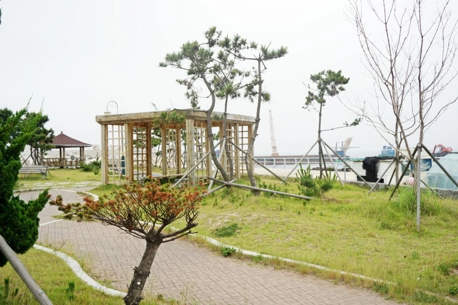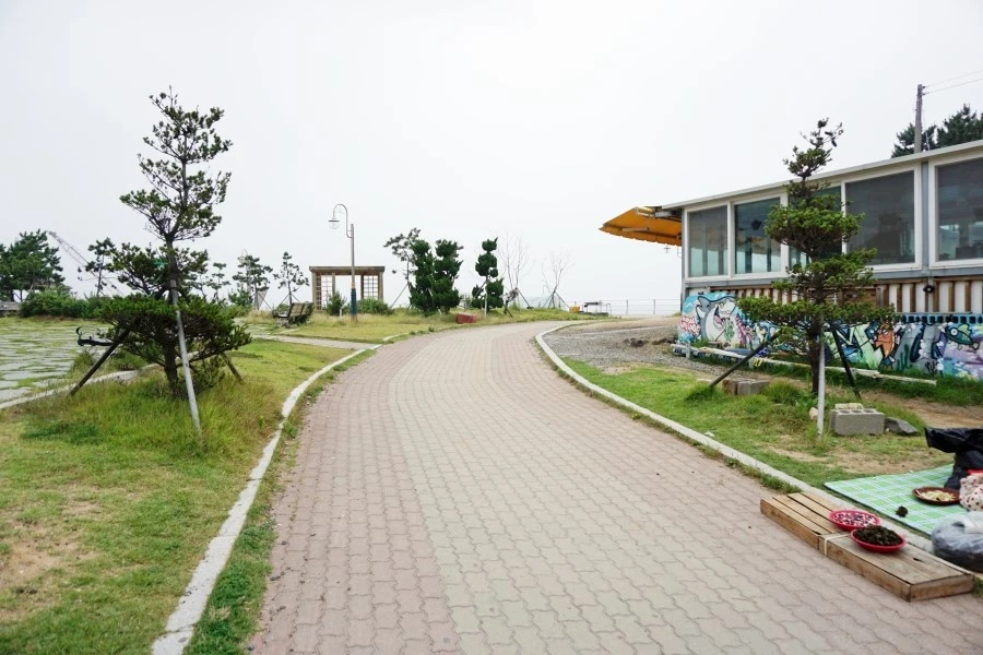 잔잔한 파도와 해안로를 따라 잘 조성된
