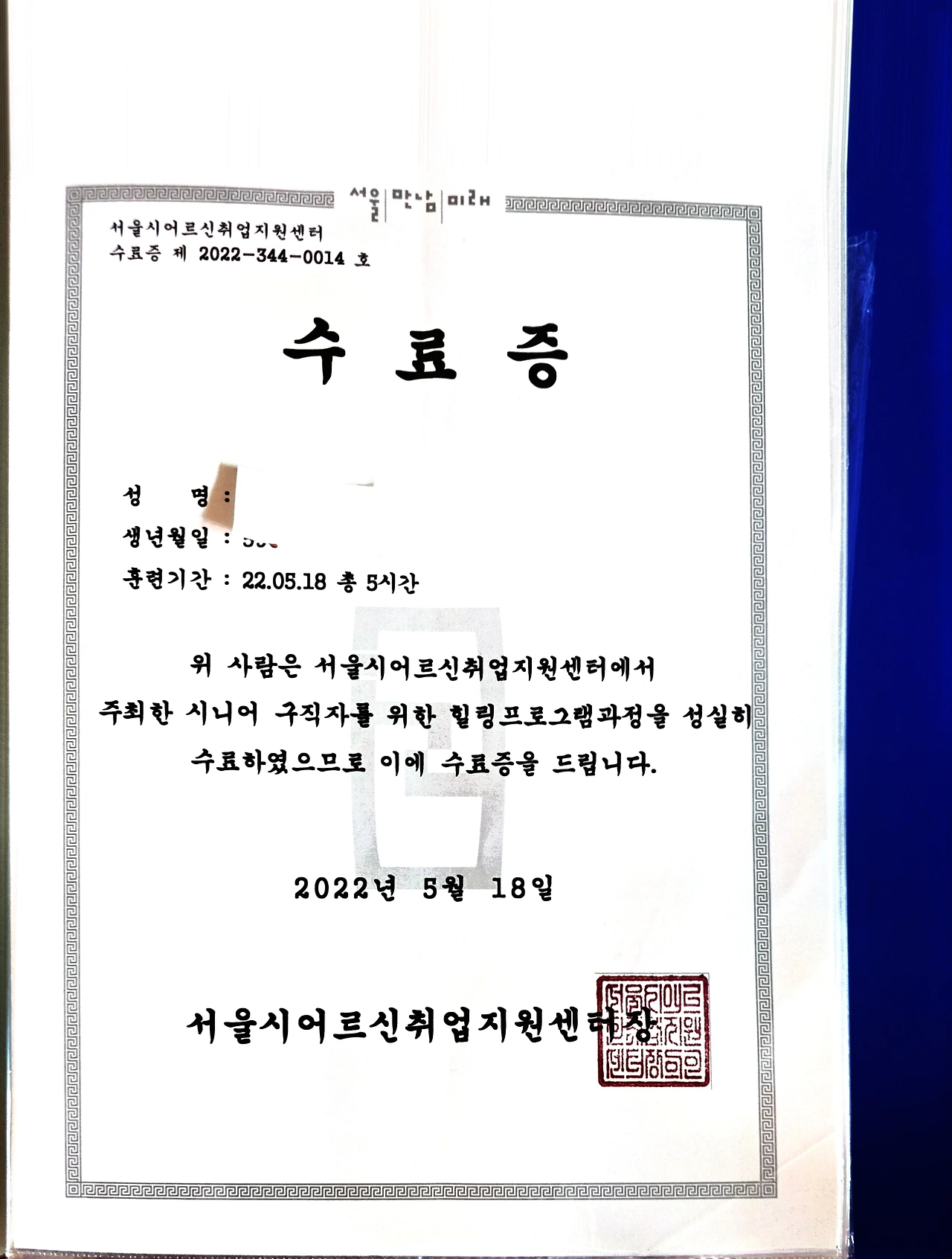 60세 또는 65세 이상 어르신은 거의 대부분이 무료교육이니 시간이 생기면 무료하게 보내지