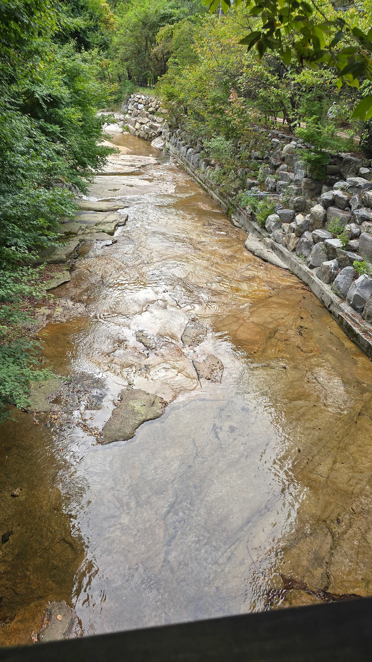 가족들을 데리고 송추계곡길을 오르다가 땀이 나서