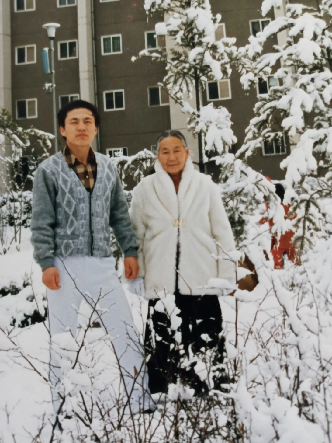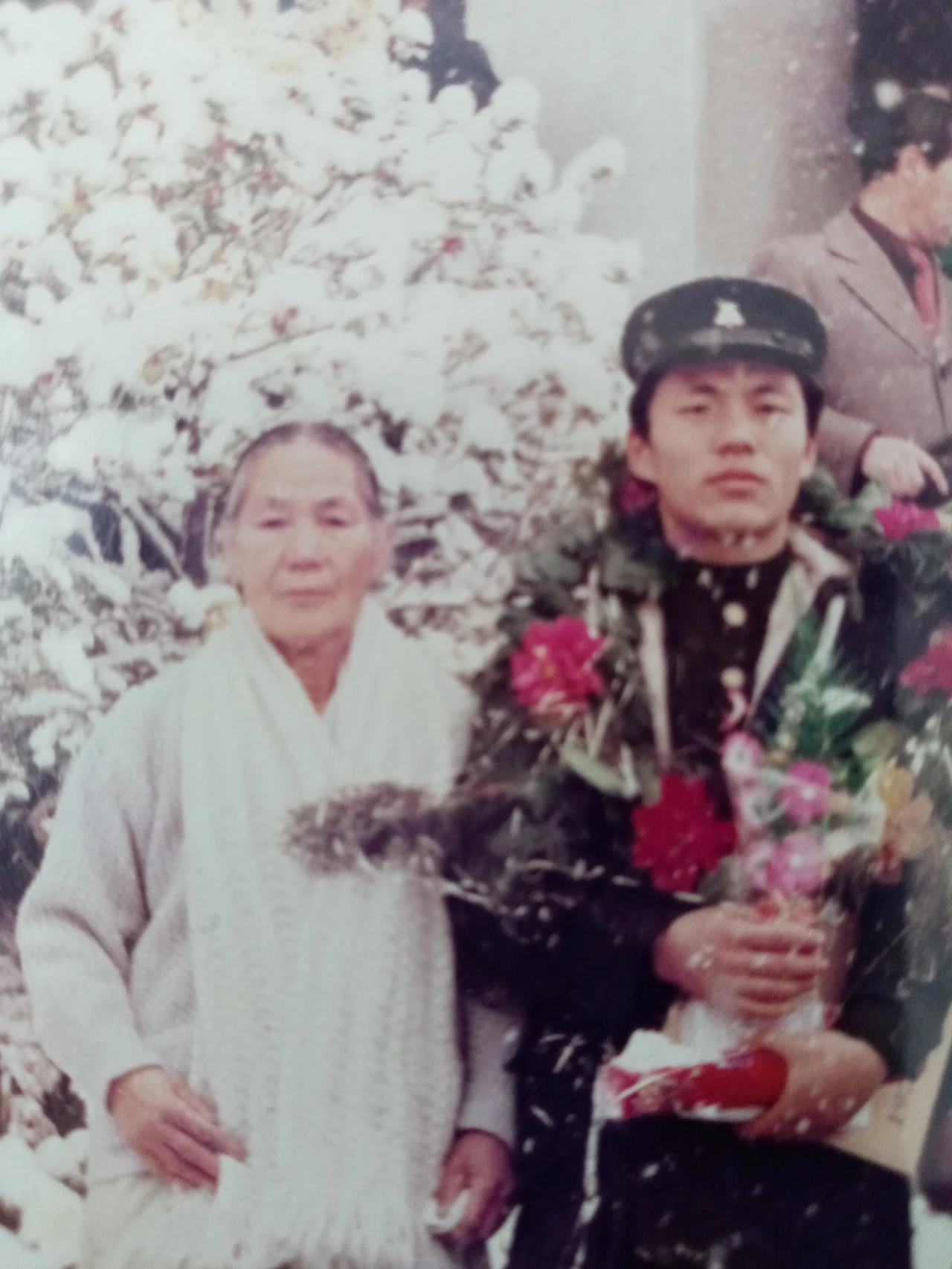 쌓인 학교 교정에 할머님께서 오셔 가지고 졸업을