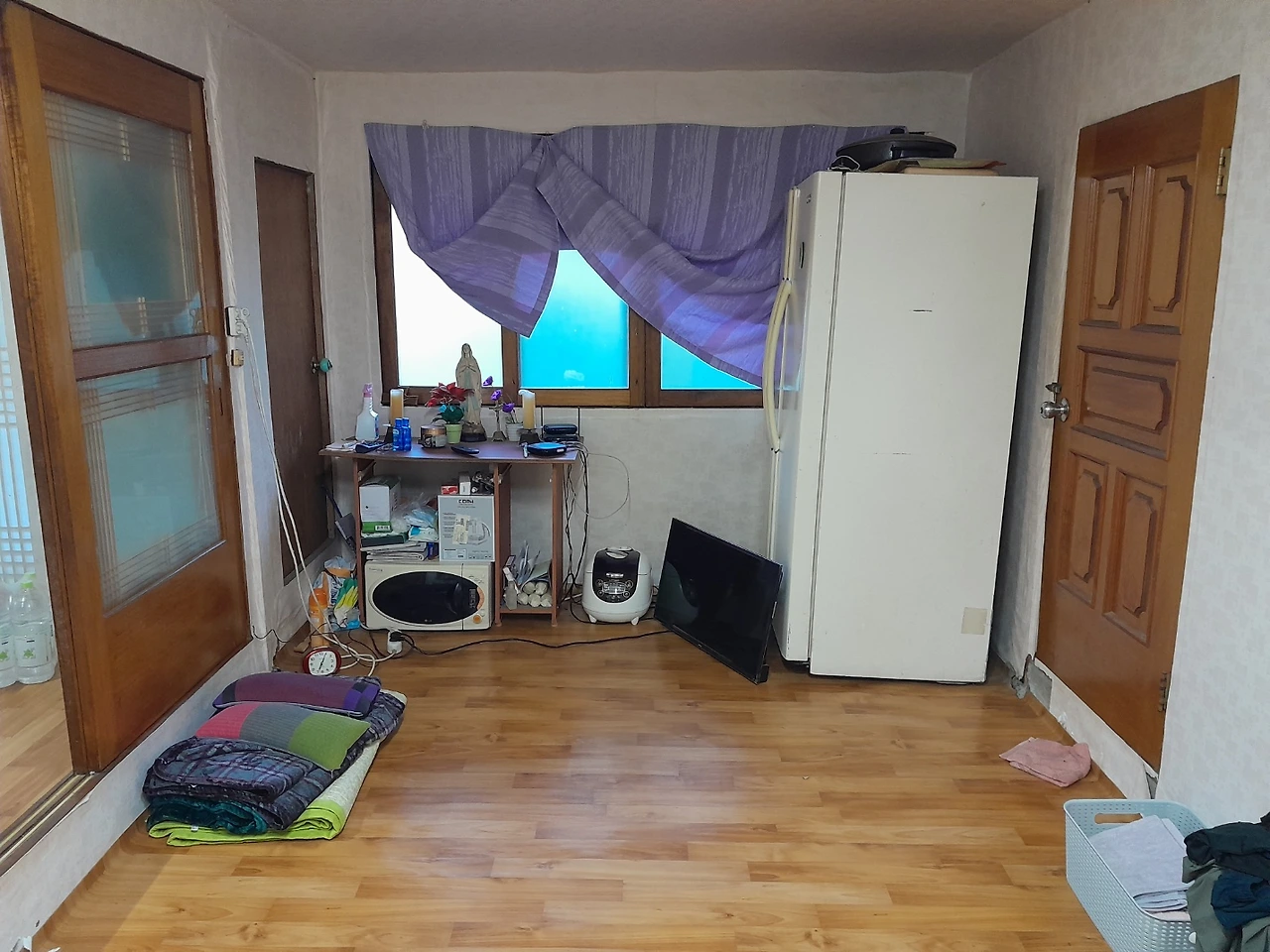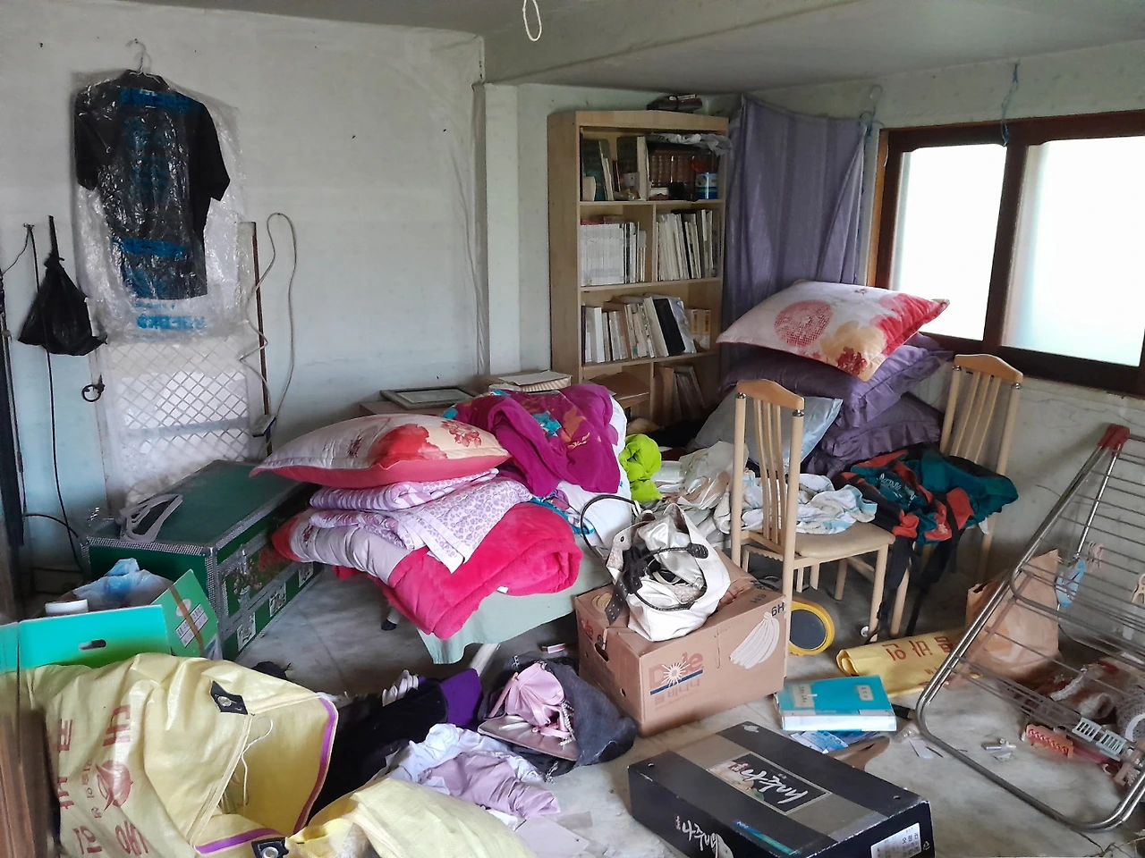 남동생을 불러 함께 사용하지 않은 이불 옷 신발 가구들을 캄캄한 밤에 다 버리고 쓸만한것들만