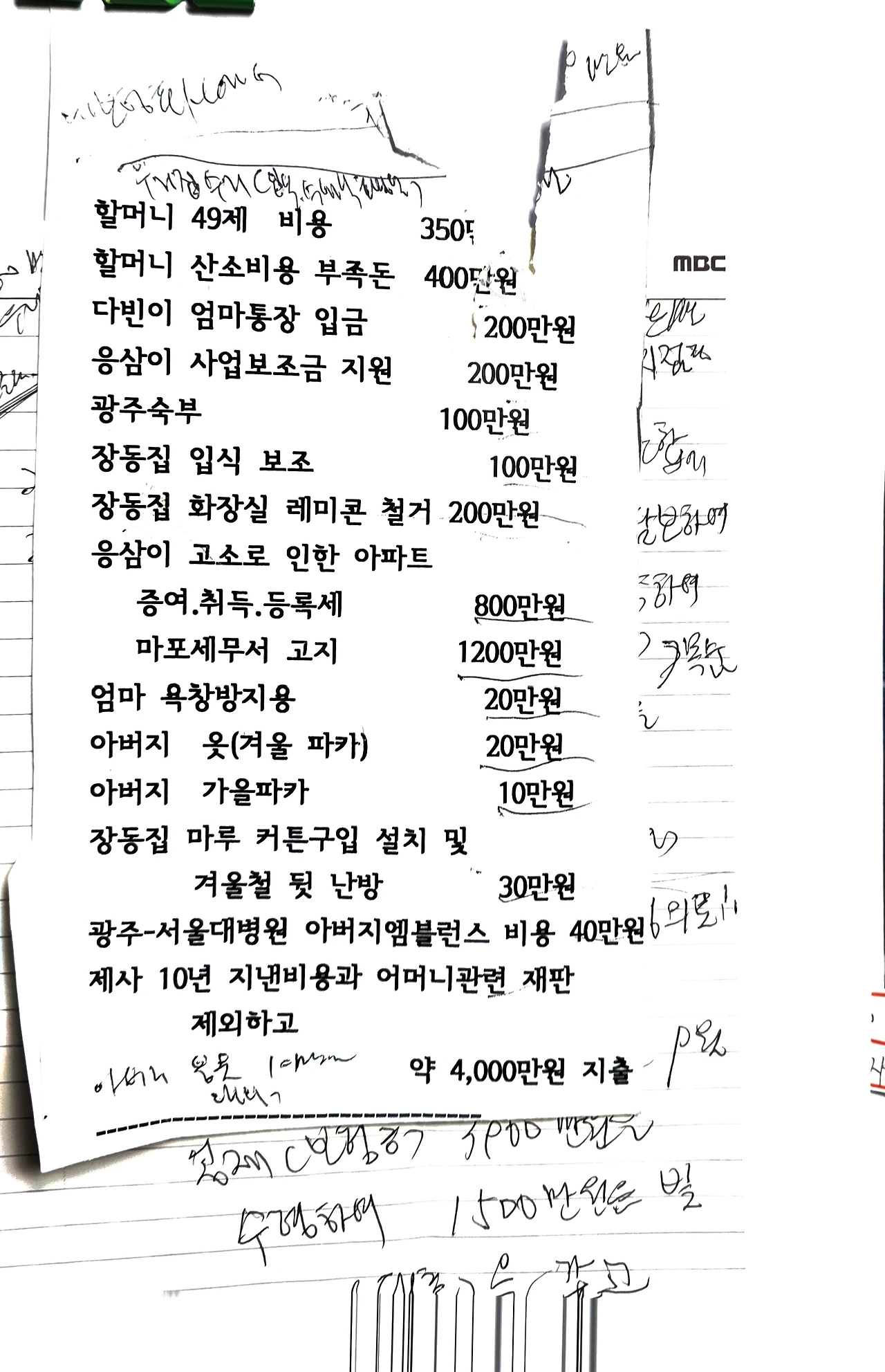 지출되어 버린 경비 내역서)