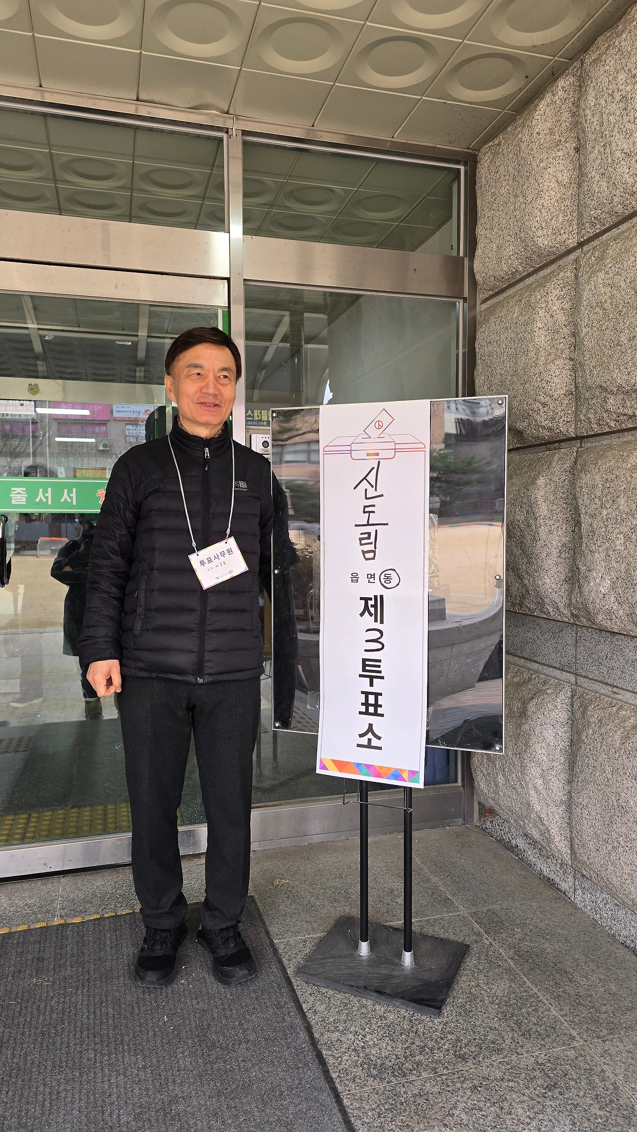 투표소 입구에서 선거하러 오는 유권자들을 맞이하면서 안내를 해주는 보직을 받아 학교 운동장에서 사명감을 갖고 열심히 일을 했다