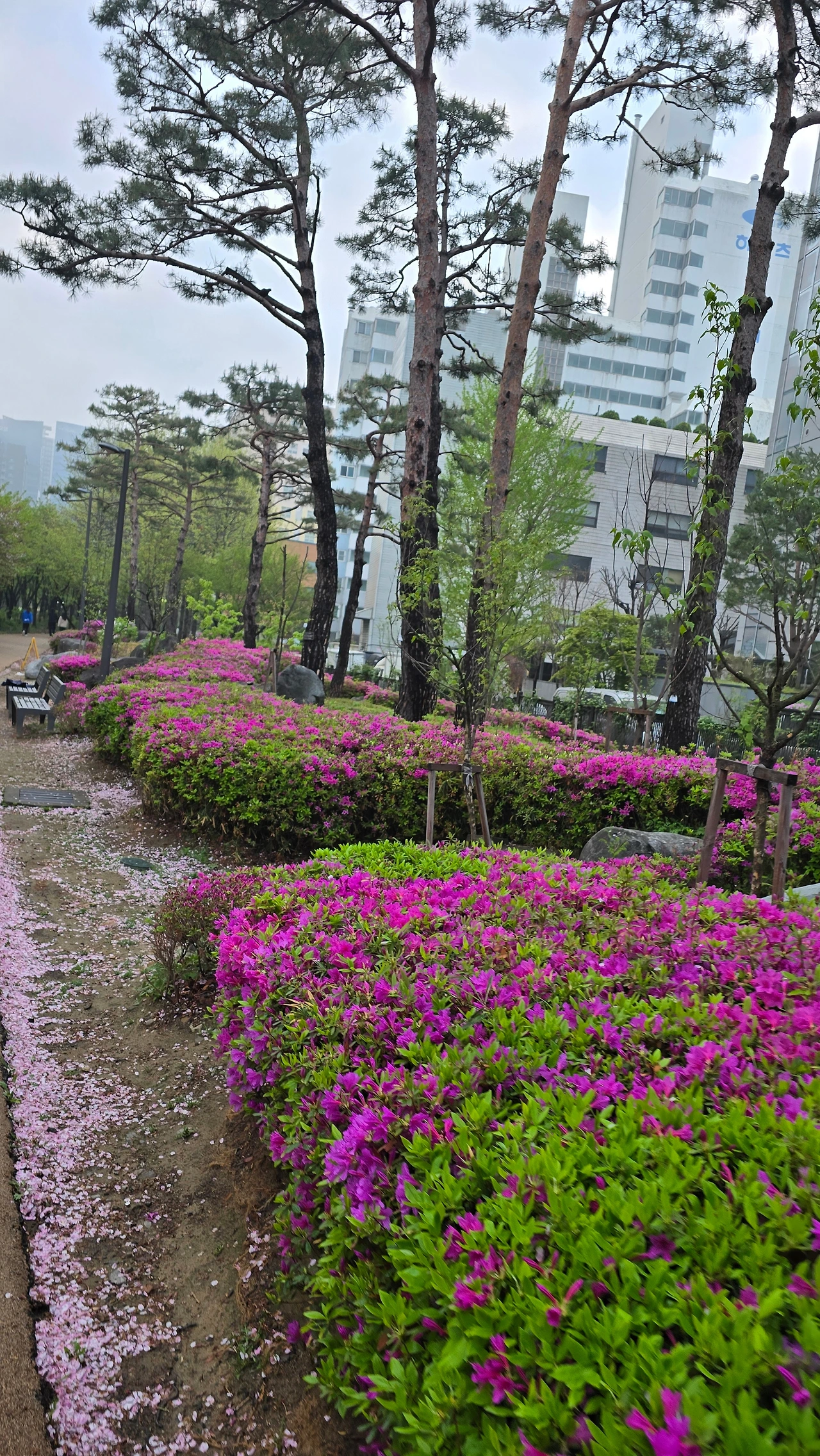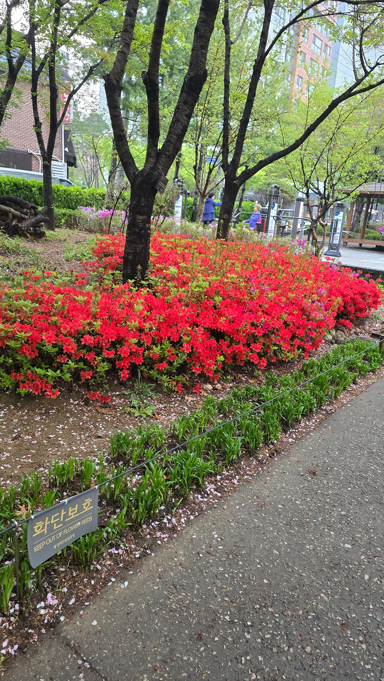 경의선 숲에 피어있는 튤립과 수선화 꽃 철쭉꽃을