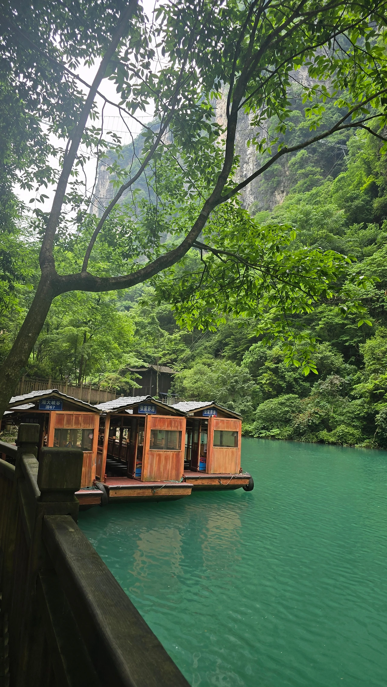 6인승 벤 승합차에 우리 가족 4명과 여성 가이드 한분이 승차하여 장가계 보봉호수에 가 다른 일행들과 함께 유람선을 타고 호수를 구경했다.