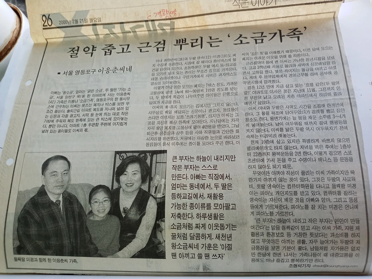 (근검하고 행복한 가정으로 일간신문에 게제)