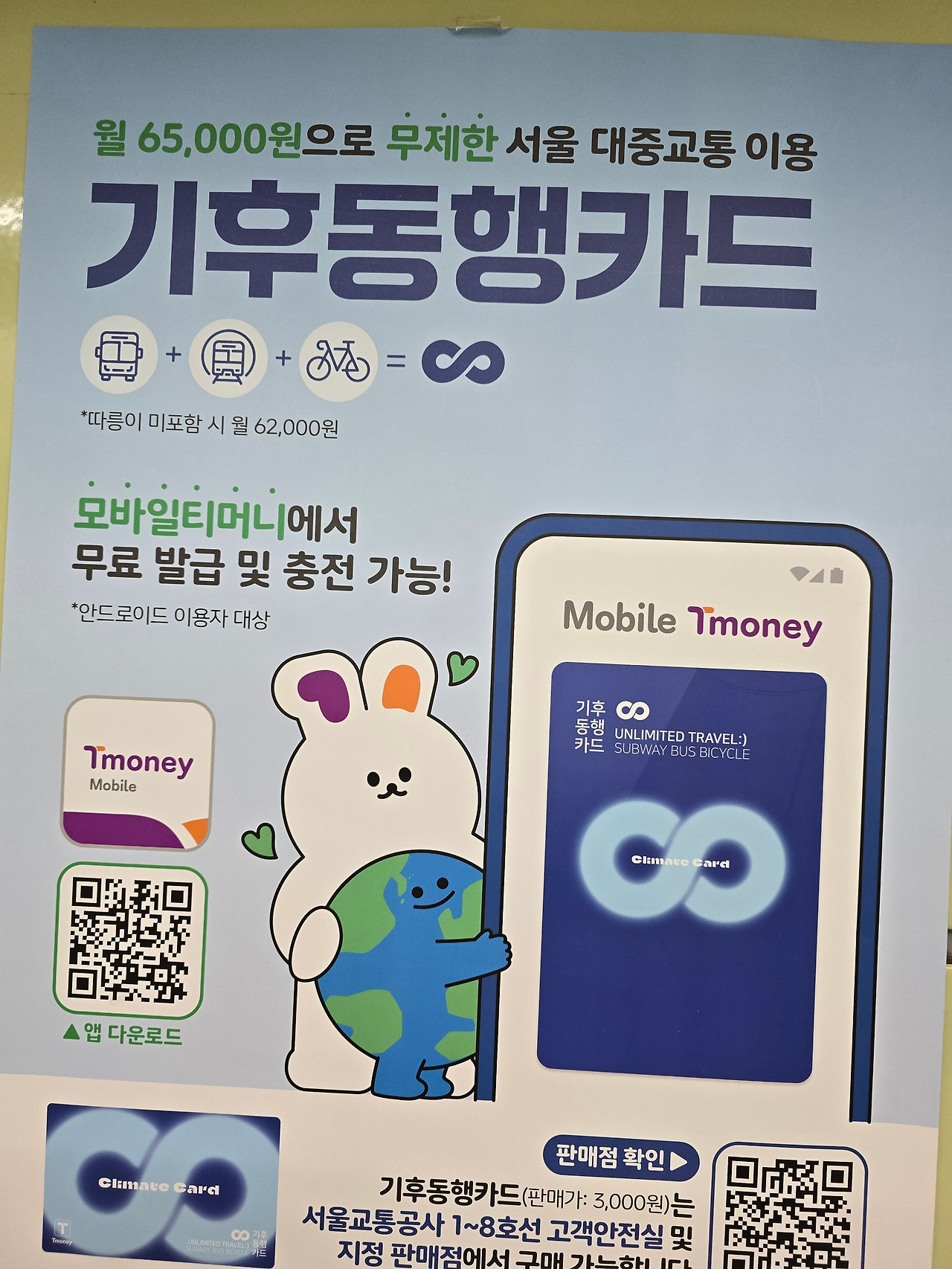 서울시에서 버스와 지하철을 30일 이내에 무한정으로 사용할 수 있는 "기후 동행카드"를 출시하여