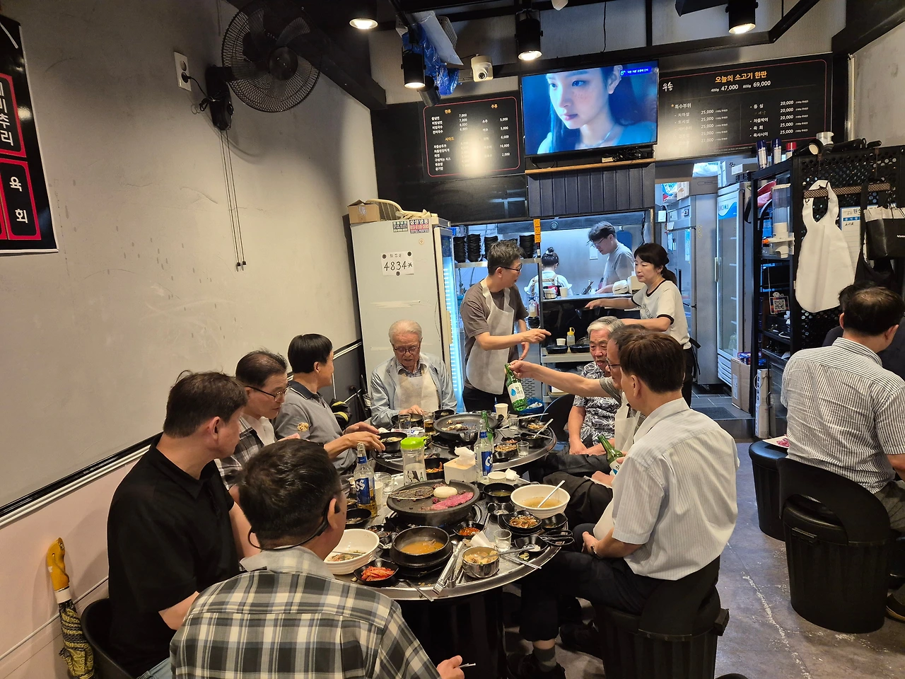 35년 전에 함께 근무했던 동료들과 서로 얼굴을 맞대고 반갑게 만나 대화를 나누면서 식사하는 장소인 석수역이다