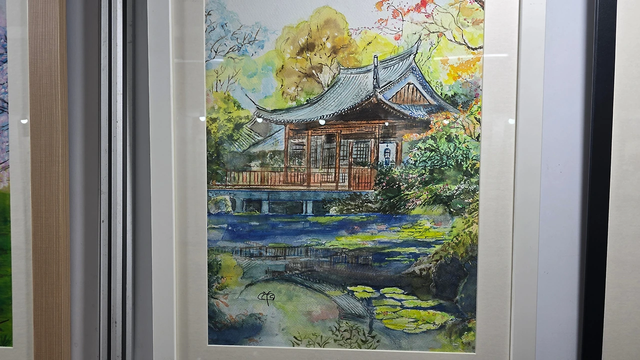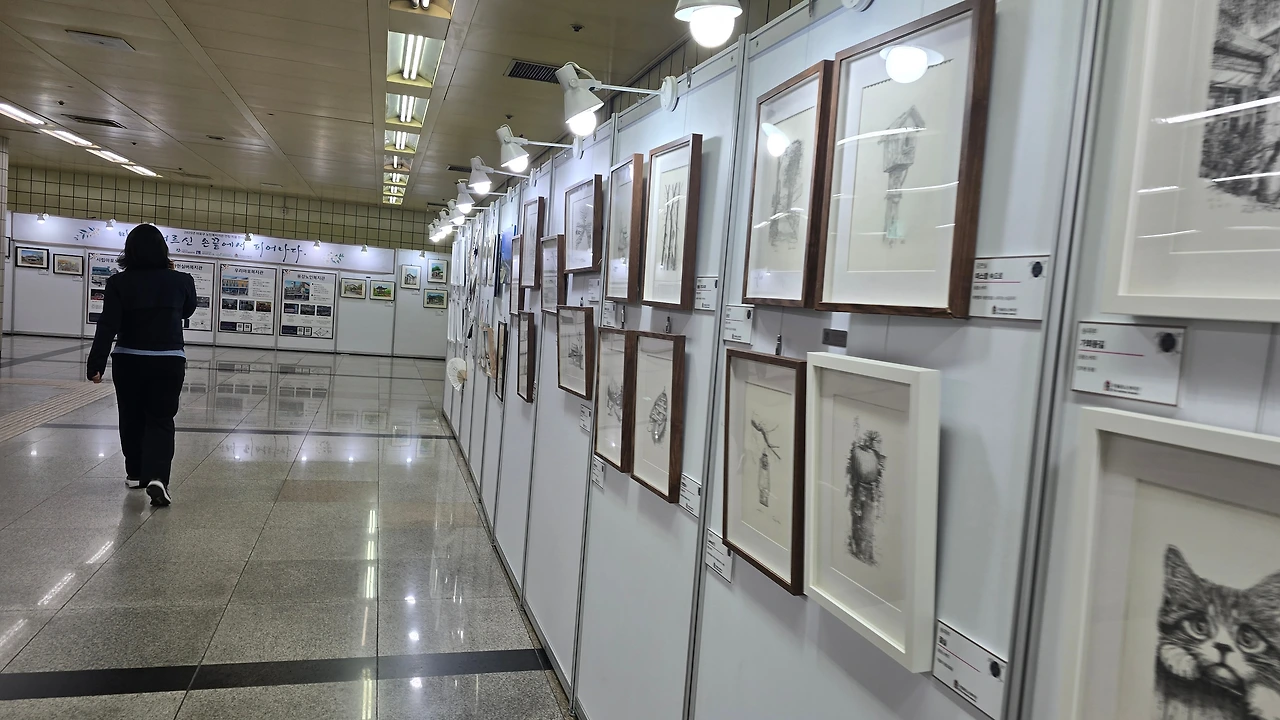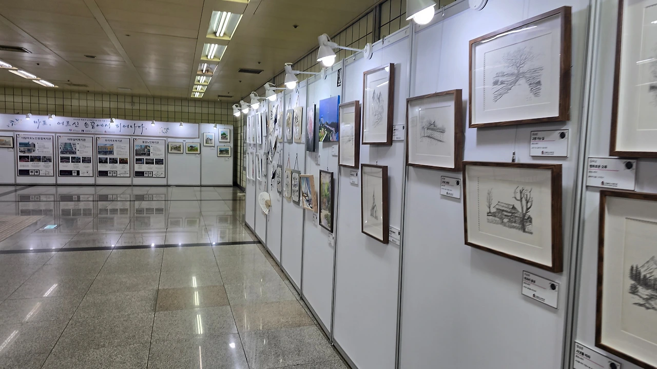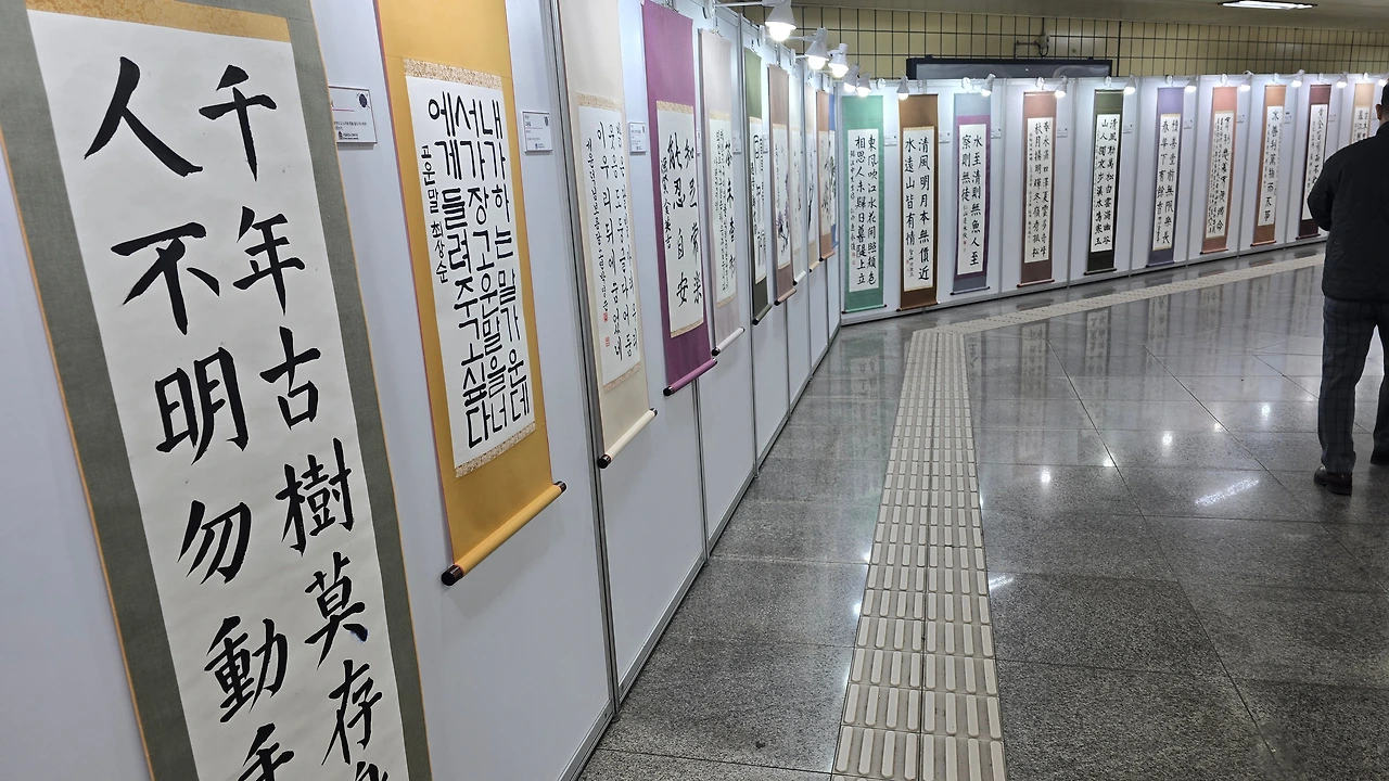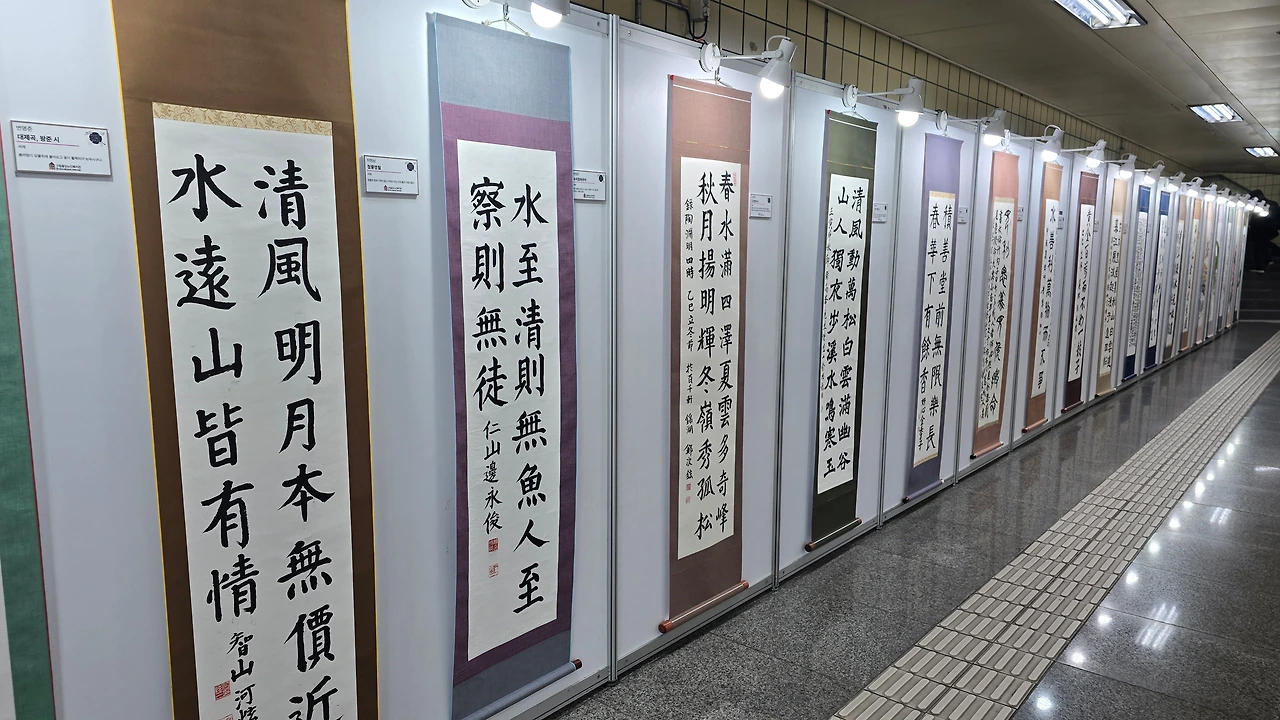 서예와 그림 그리기 글씨작품들을 지하철 역사 내에