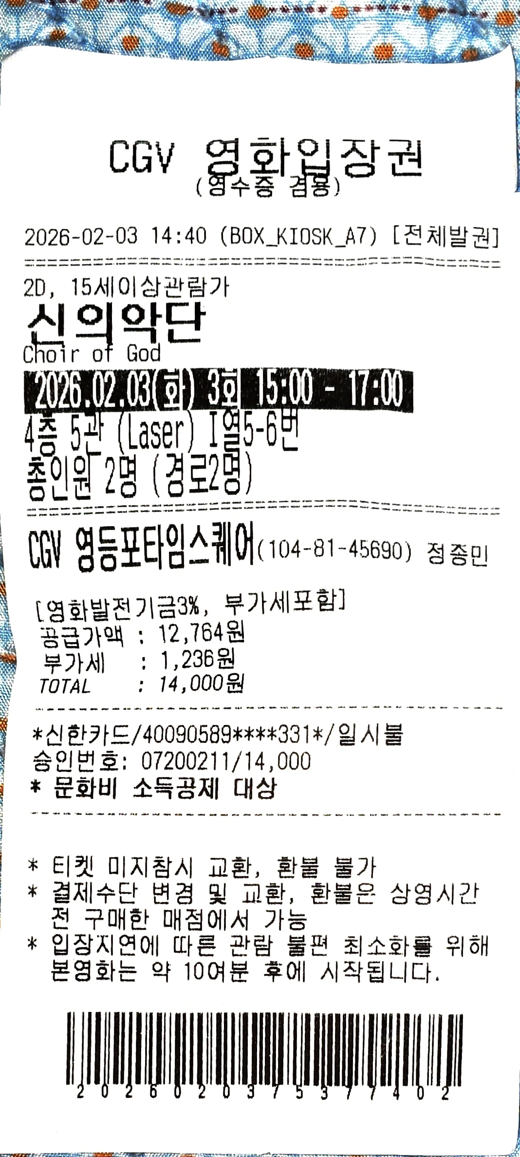 (경노우대 영화관람권)