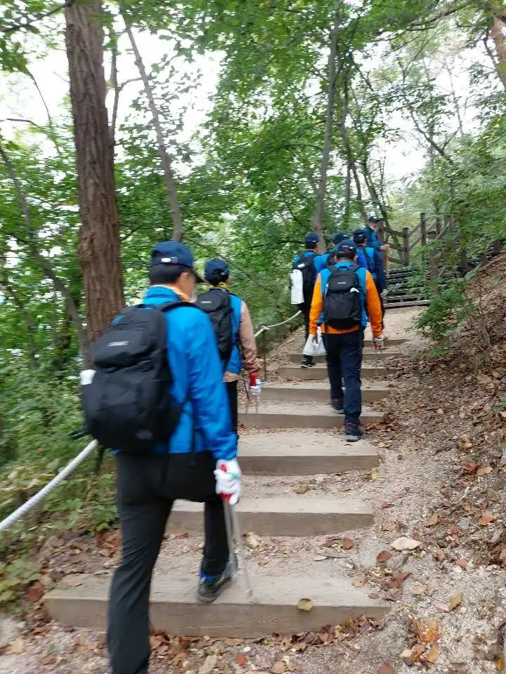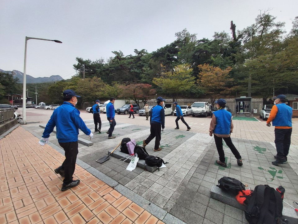 재직했던 예비역 장교와 대학교수로 재직하다가 지금은 시간강사로 출강하시는 분, 사업을 하다 어려워 사업을 중단하신 분, 공직에 계시다가 퇴직하신 분들의 각각 다른 분야의 직장 경험담들을 이야기하고 청취하면서 등산객들이 코를 풀고 버린 휴지를 집게로 집어 비닐봉지에 수거하고, 삽과 빗자루를 처음 들어본다는 대학교수 출신의 봉사자도 계시지만 이런 사회공헌일자리 봉사를 하다 보니 정말 좋은 경험이고 보람을 느낀다고