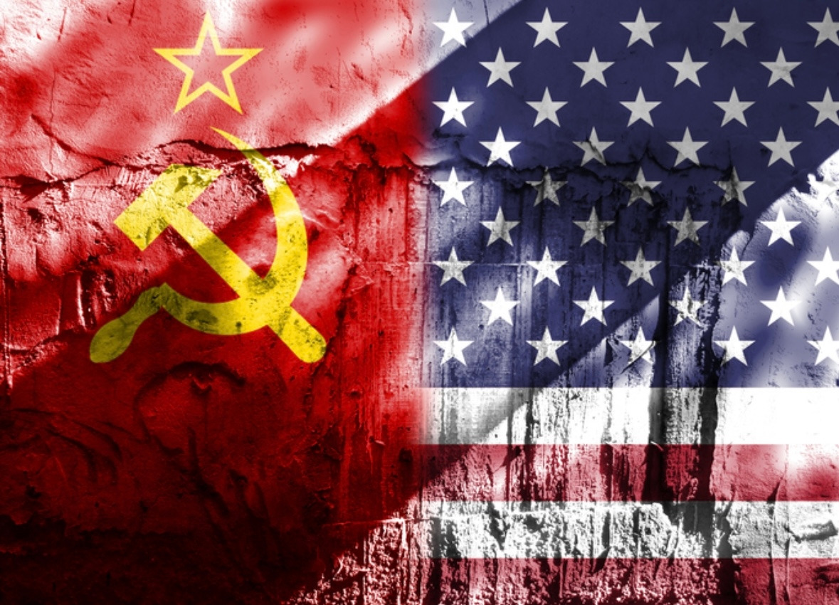 해설: 이 작품은 제2차 세계대전이 끝난 후 냉전의 도래를 알리는 작품입니다. 실제로 1945년 8월 15일 일본의 포츠담 선언 수락 이후 1945년 9월 2일 미주리 전함 갑판에서 일본은 공식적으로 항복 문서에 서명을 하고 연합군에 무조건 항복합니다. 이후 일본 열도에는 미군정이 들어서고, 전 세계 곳곳에서 미국과 소련 대신이념 투쟁으로 전쟁이 발발합니다. 그리스 내전, 중국 국공 내전, 한국 전쟁, 베트남 전쟁, 쿠바 미사일 위기 등… 또한 2차 대전 직후 미국 트루먼 대통령의 트루먼 독트린으로 마셜플랜이 시작되고 미국은 서유럽 재건 원조에 돌입합니다. 소련은 이에 맞서 코메콘을 창설 동유럽 경제 원조를 시작합니다. 뿐만 아니라 미국이 북대서양조약기구(NATO)를 창설하자(1949년) 소련 역시 이에 맞서 바르샤바조약기구(WTO)를 창설합니다. 그리고 곧 양국은 문화, 과학, 항공 우주, 경제, 군사 전 분야에 걸쳐 치열한 경쟁을 주도합니다.