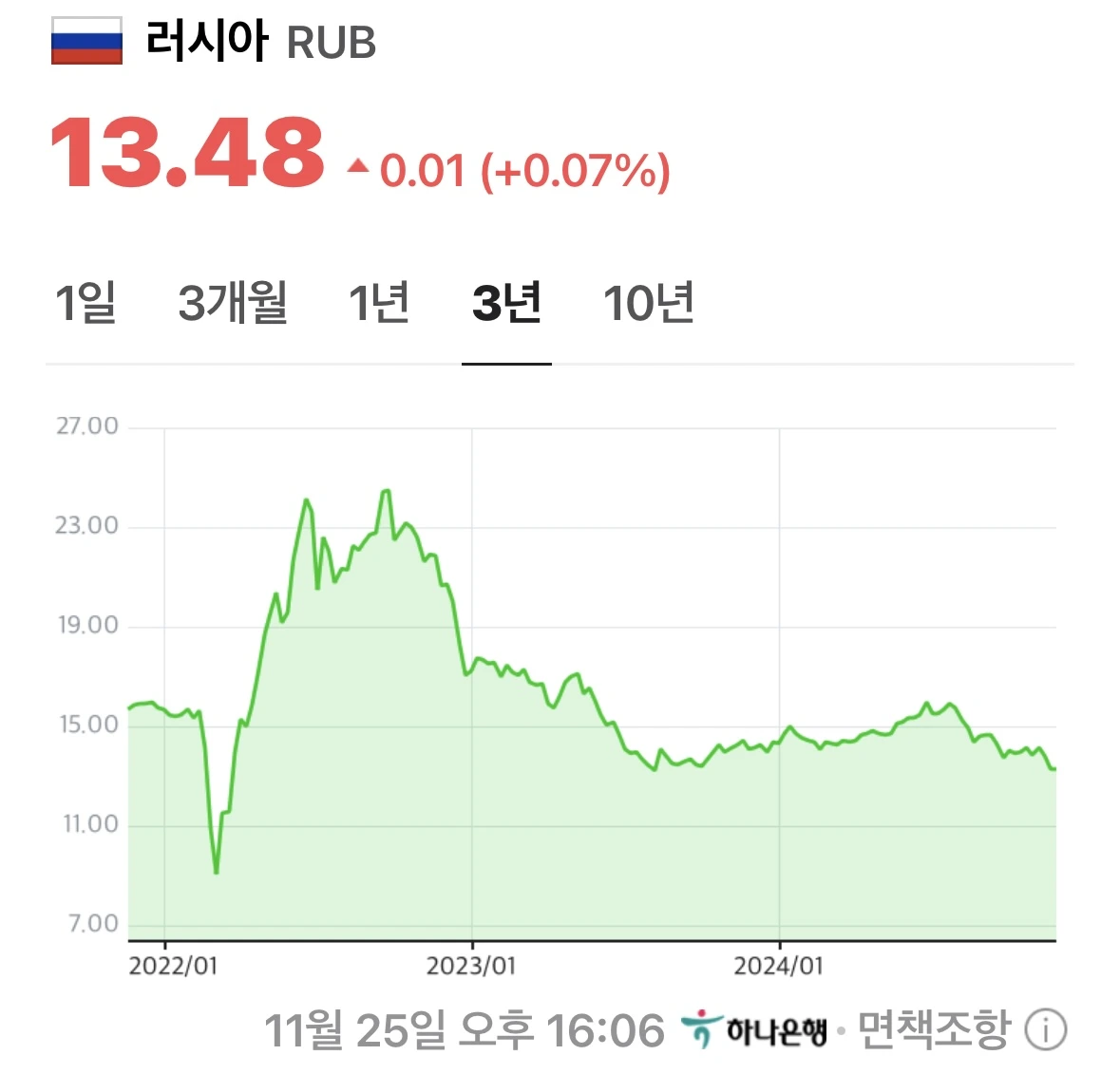 위 사진은 3년 동안의 러시아 루블화 가치 변동을 보여주는 그래프다.