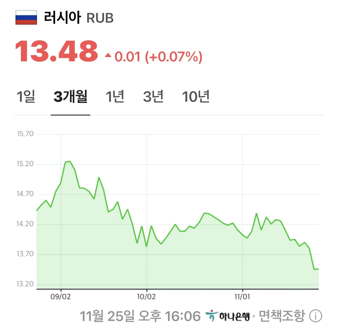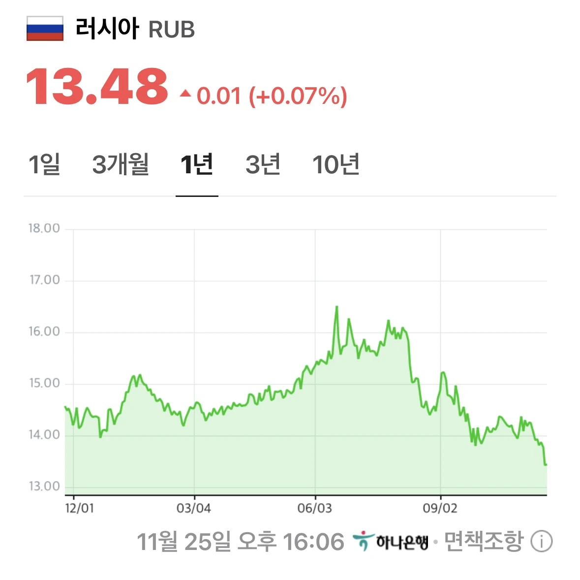 위 사진은 1년 동안 러시아의 루블화 가치 변동 양상을 보여주는 그래프다.