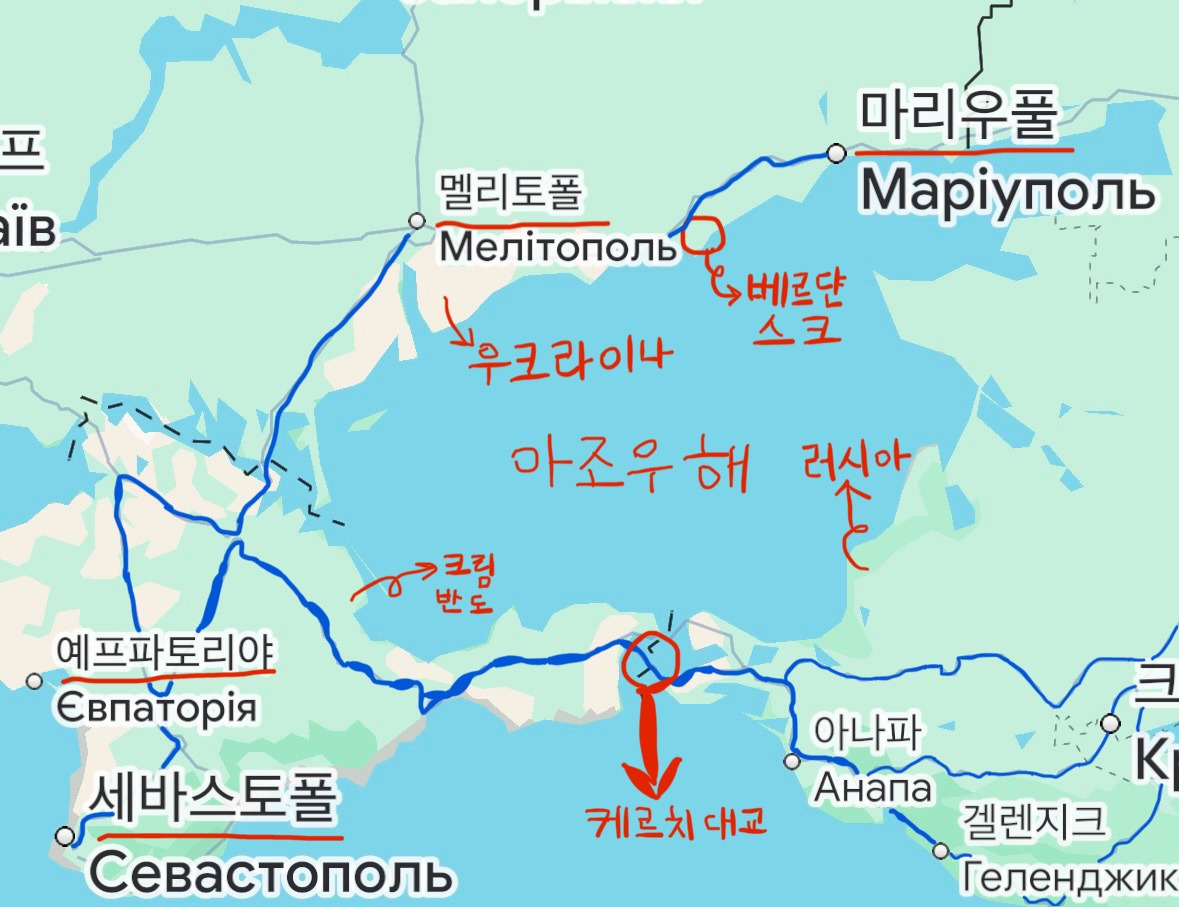 가장 중요한 건 러시아 남부 점령지 내 보급망 교란과 잔존해 있는 흑해 함대를 견제해야 한다. 그러려면 일단 마리우폴-베르댠스크-멜리토폴-세바스토폴을 잇는 러시아의 육상 보급로와 멜리토폴로 향하는 길목에 위치한 보급 허브인 토크마크와 러시아 본토랑 크림 반도를 잇는 케르치 대교에 대한 공습도 주기적으로 가하며 크림 반도-아조우 해 보급망을 교란시켜야 한다. 이와 동시에 러시아 잔존 흑해 함대에 대한 수상 드론 공세를 강화하고 크림 반도에 위치한 공군 기지를 드론으로 타격해 러시아 해•공군의 활동을 억제해야 한다. 또한 전방에 대한 방공망과 전자전 역량을 강화해 러시아의 드론과 전투기의 공중 작전 역시 견제해야 한다. 이러한 끝없는 후방 타격과 러시아의 해•공군 전력 소모를 6개월 간 유도하면서 동시에 헤르손 주와 가장 가까운 곳(예를 들자면 킨부른 반도)에 상륙 지점을 여러 군데 확보해야 한다. 이때 원활한 상륙 지점 확보를 위해 러시아군 병력을 분산시켜야 하는데 이는 자포리자 주 정면에서 여러 군데에 동시다발적 국지전을 벌이며 교란시켜 러시아군의 시선이 정면에 집중되도록 유도해야 한다.