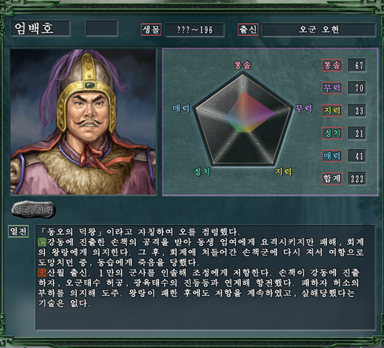 [정사]에서는 이때쯤의 손책이 “용모와 얼굴이 빼어나고, 우스갯소리를 좋아하며, 성품이 활달하면서도 남의 의견을 잘 들어주고, 사람을 기용하는 데 뛰어났다”고 합니다.