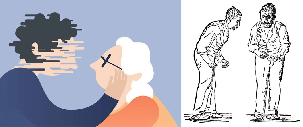 기억을 잃어가는 알츠하이머병(좌)와 움직이기 힘들어지는 파킨슨병(우)