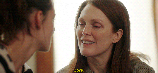 극의 종반에 이르러서는, 앨리스는 막내딸이 연극 각본을 읽어주는 것을 멍하니 듣고 있는 모습을 보여줍니다. 딸도 알아보지 못하고 딸이 읽어주는 내용을 알아듣는지도 알 수 없으며, 의미 있는 말도 거의 만들어내지 못하는 상태였지만, 딸이 던진 질문(내가 읽고 있는 것이 무엇에 관한 내용 같나요?)에 단 한마디의 대답을 하게 됩니다.