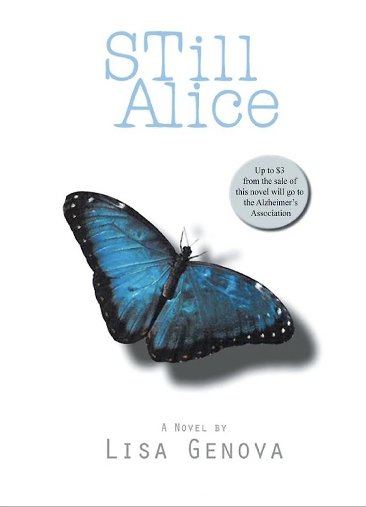 스틸 앨리스의 원작 소설 표지. '나비'의 이미지가 들어가 있습니다.