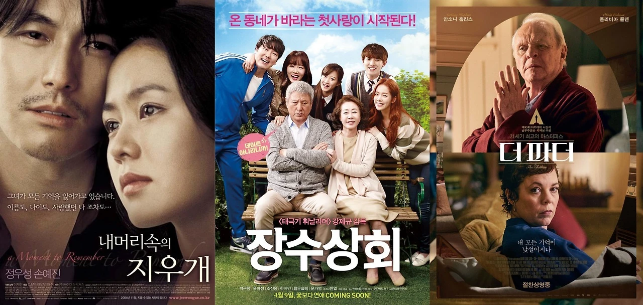 영화 중에서는 [내 머리 속의 지우개(2004년, 한국)], [장수상회(2015년, 한국)], 그리고 2021년에 개봉했던 [더 파더(영국-프랑스 합작)] 같은 작품들이 알츠하이머병에 걸린 환자와 그를 돌보는 가족의 모습을 보여준 바가 있습니다.