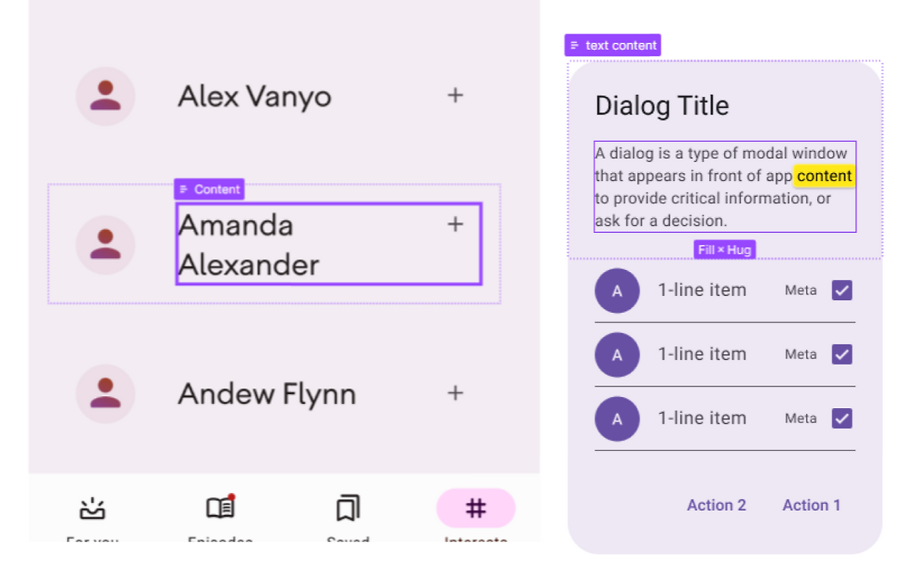 일단은 혼자 해결해 보고자 여기저기서 문서를 찾아봤는데 다들 정말 다양하게 이름을 짓고 있다는 걸 알았다. 그리고 생각보다 자세히 안 짓는다! 내가 참고한 'Material 3 Design Kit' 문서에는 제대로 이름이 안 지어진 레이어가 종종 있고 규칙도 중구난방이다. 아무래도 디자인 시스템이 갖춰진 기업은 디자이너가 여러 명이다 보니 이름 짓기 규칙을 통일하지 못한 것 같다. 여하튼 문서들을 조금씩 참고하면서 나만의 이름 짓기 원칙을 2가지 정도 세워봤다. 규칙을 만들며 참고한 문서는 맨 아래 링크해 두겠다.