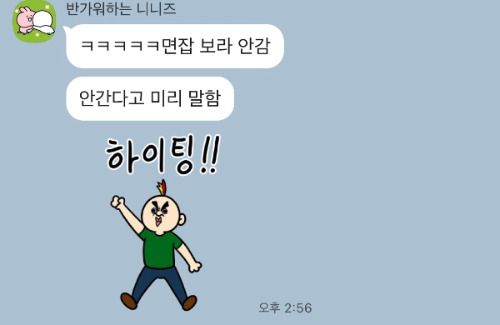 며칠 뒤 문득 그녀의 면접 결과가 궁금하여 연락을 해보았다. 내가 보았던 K는 새로운 것에 대한 리스크를 더 크게 생각하는 친구였기 때문에 아마 나도 모르게 그녀가 당연히 면접에 응했을 것이라 생각했던 모양이었다. 하지만 돌아온 답변은 조금 의외였고, 나는 카톡을 보며 조금 오묘한 기분을 느끼기도, 조금 뿌듯함을 느끼기도 하였다.