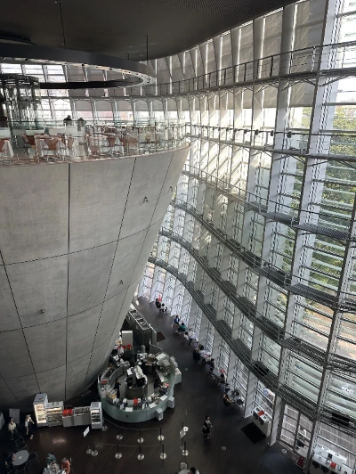 그런데 아뿔싸, 어떤 전시를 하고 있는지 제대로 알아보지 않은 탓인지 티켓 부스에 줄이 엄청 길게 서 있는 것이 아닌가. 고민을 하다 우선 내부 인테리어라도 구경할까 싶어서 발걸음을 돌렸더니 다행히 다른 무료 전시도 진행하는 듯 보여 다른 전시관을 구경하며 상황을 좀 지켜보기로 했다.