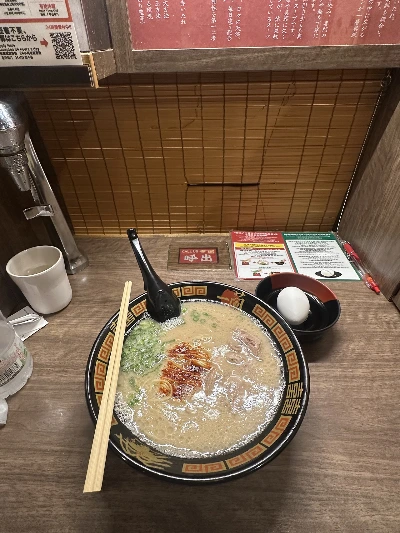 그렇게 나는 조금 더 기다려 1인 자리에 착석하고 먹고 싶던 이치란을 즐겼다. 아저씨가 추천해 주신 반숙 계란과 함께.