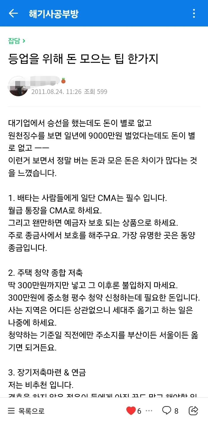 등업용 글이라기에는 제목부터 "등업을 위해 돈 모으는 팁 한가지"다 보니 웃음부터 나왔다.