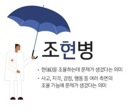 생각과 느낌, 지각과 행동 등에 광범위한 이상 증상을 일으키는 정신질환이다.