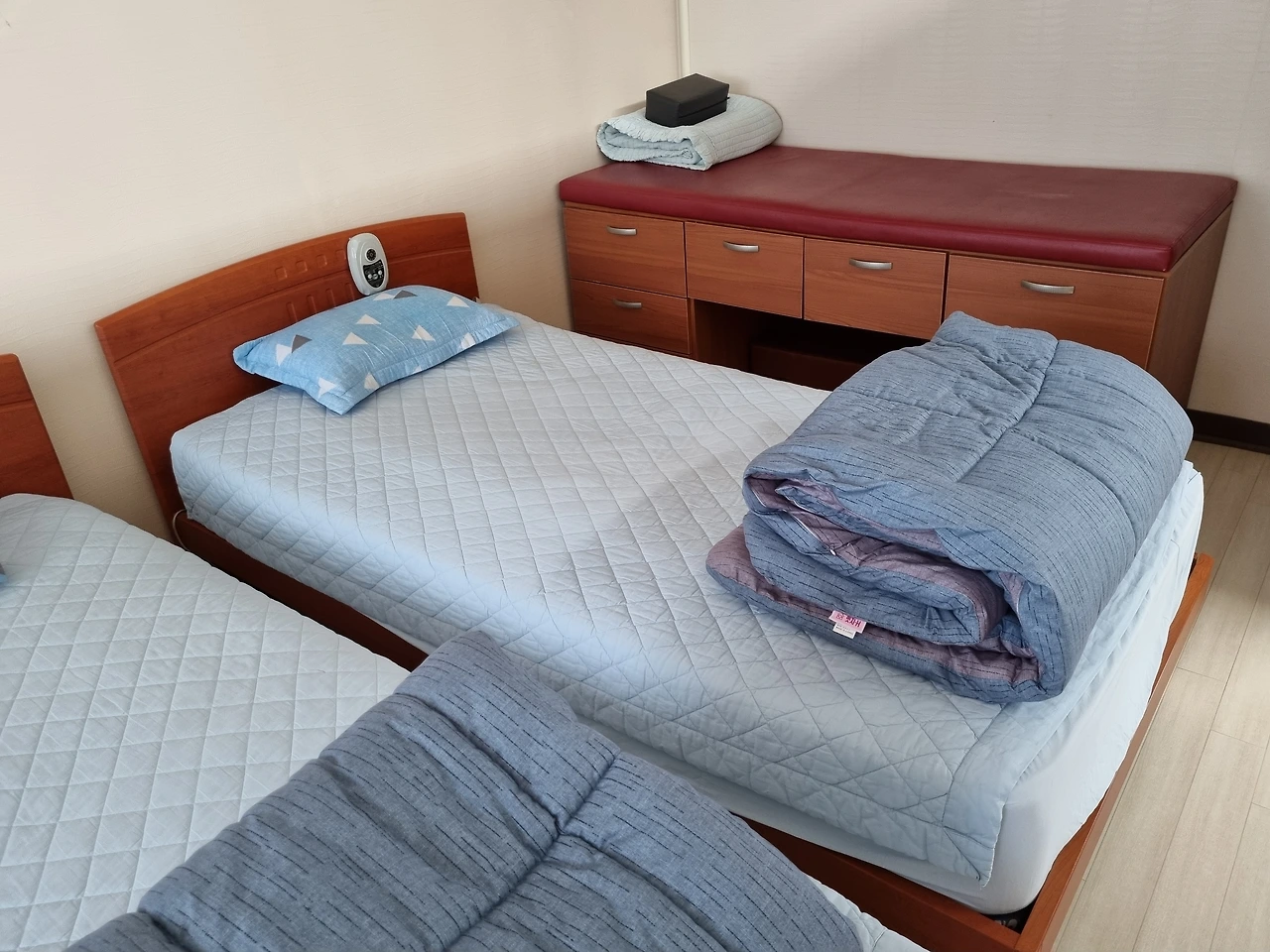 원칙적으로 아예 모든 아이들을 안 눕혔으면 좋겠다. 코로나 이후로 현재 침상은 하나 건너 하나에만 눕히고 있다. 침구류는 일주일에 한 번 세탁을 의뢰하고 있고, 학생이 누웠다 간 이후에는 탈탈 털고 소독 스프레이를 뿌려 건조한다. 연이어 이용할 수 없도록 사용금지 팻말을 올리고, 번갈아가며 사용한다.