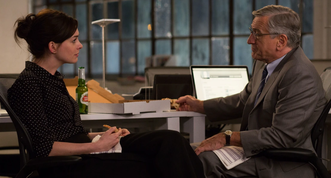 영화의 스토리는 간단하다. 처음에 벤의 나이가 너무 많아 탐탁치 않아하던 줄스는 벤의 포용력과 지혜, 배려 덕에 불안과 상처를 잠재우고 위로받는다. 결국 줄스는 그를 인턴이자 ‘절친’, '믿을 수 있는 사람'으로 여기게 된다는 내용. 등장인물들의 꼬이고 엉킨 갈등들이 벤의 지혜 덕에 하나씩 해결되며 끝난다.