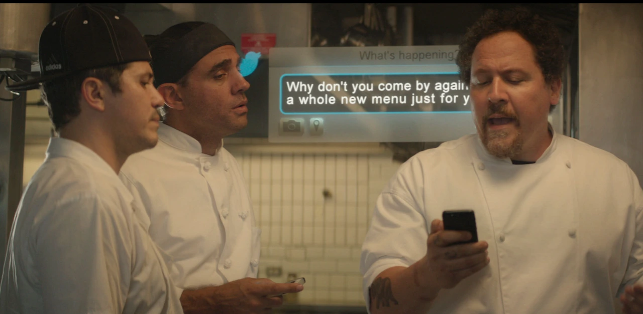 일류 레스토랑의 셰프 칼 캐스퍼는 뛰어난 요리실력에도 불구하고 오너가 아닌 탓에 메뉴 결정권을 갖지 못한한다. 그 때문에 번번이 오너와 갈등을 빚고, 오너가 정한 진부한 음식 때문에 음식평론가에게 혹평당하자 홧김에 직장을 그만둔다. 평론가는 트윗에 음식과 셰프에 대한 혹평을 올렸는데, 정작 SNS를 하지 않는 칼은 이 사실조차 모른다. 수근대는 직원들 때문에 이 사실을 알게 된 칼은 10살짜리 아들 퍼시에게 SNS 계정 만드는 법을 배운다.