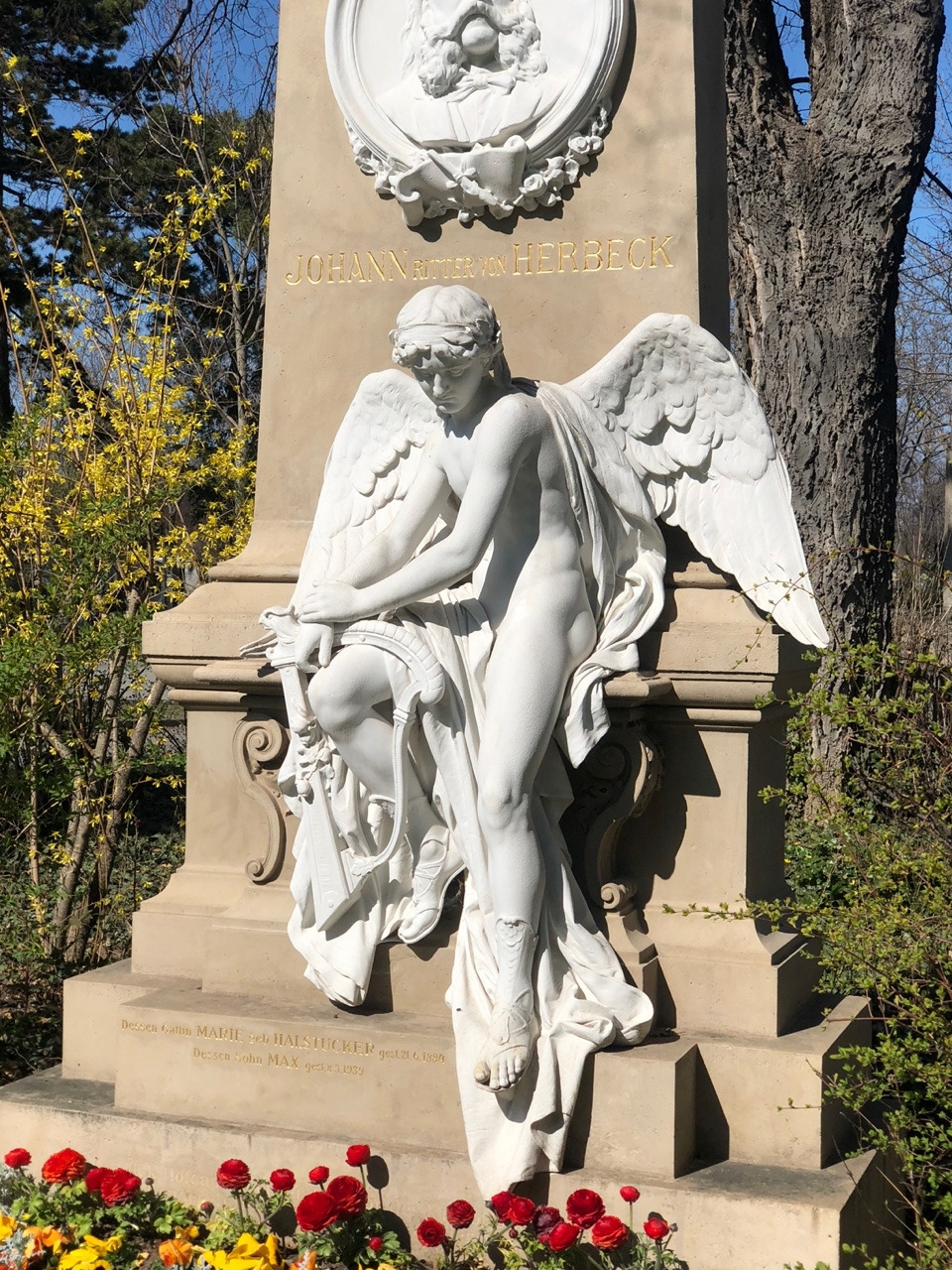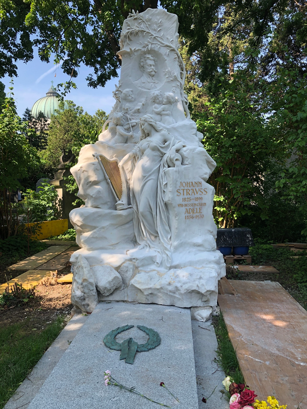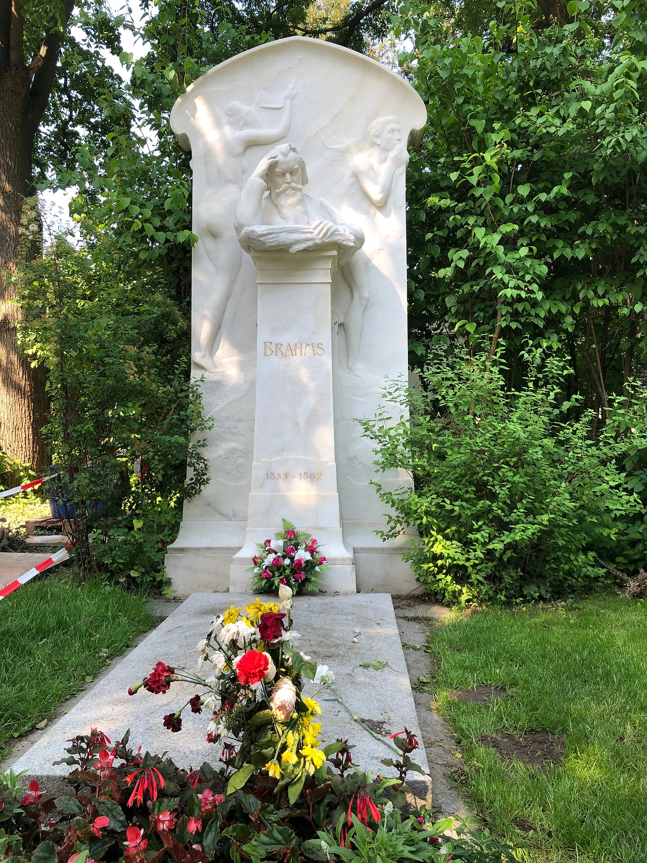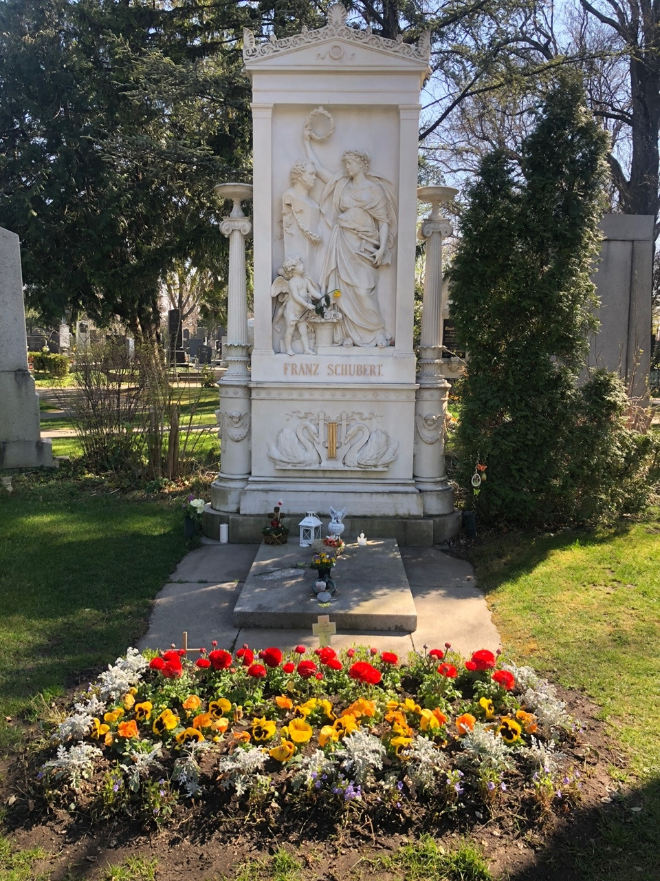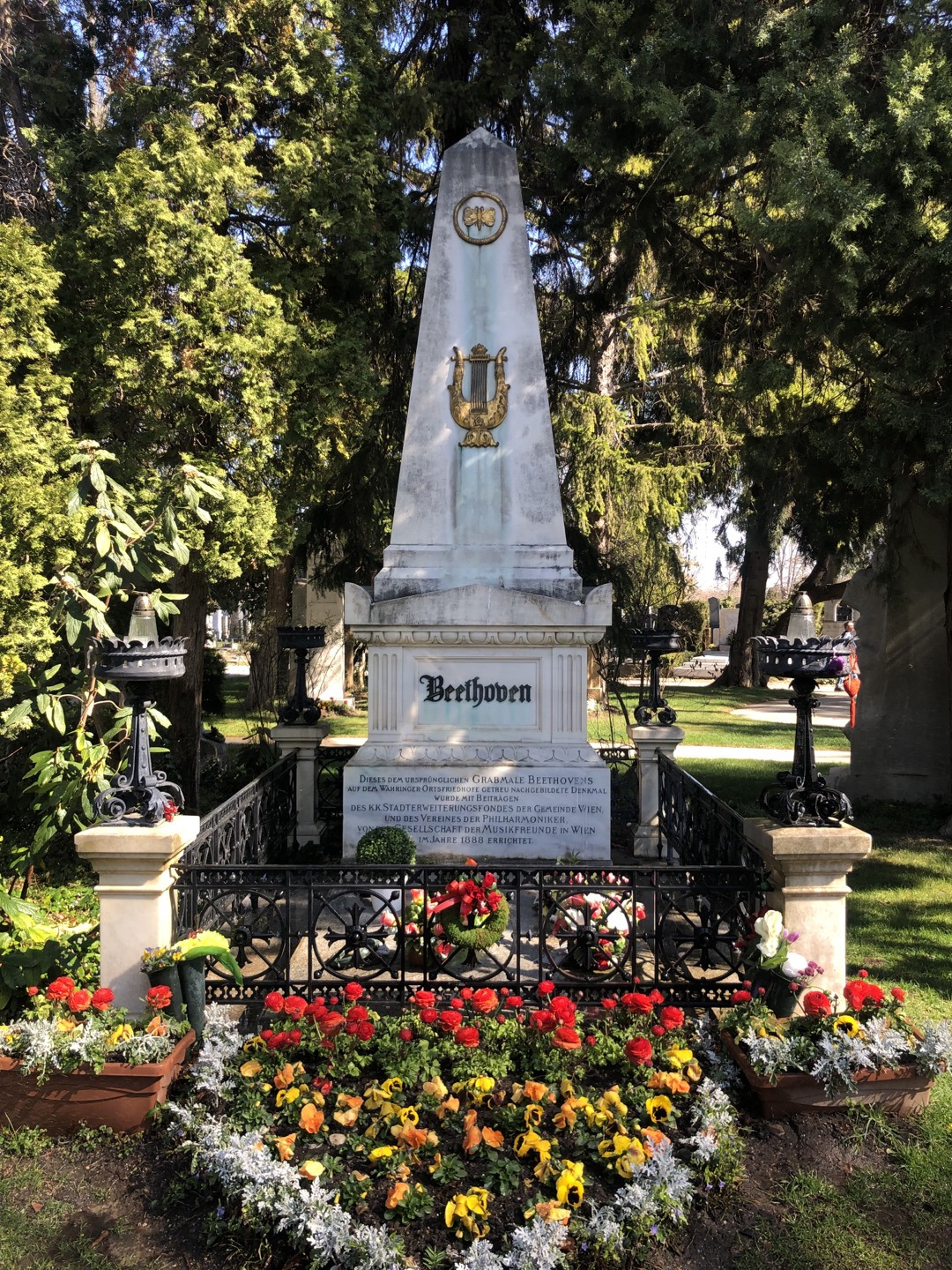 베토벤의 묘에는 황금색 나비와 하프가 인상적이고, 아마 공원 관리인일 테지만 붉은, 노란색의 꽃들이 묘의 엄숙함과 무거움이 아닌 아니라 마치 공원 같은 밝음을 선사한다. 슈베르트의 묘에는 음악의 신 뮤즈가 월계관을 선사하는 조각이 되어 있다. 브람스의 묘가 특이하다. 뭔가 작품을 창조해 내기 위해 고뇌하는 예술가의 혼이 깃든 것 같은 느낌이다. 마지막으로 '아름답고 푸른 도나우강'으로 유명한 요한 슈트라우스 묘에는 예의 그 장난기 한 가득한 얼굴이 새겨진 모습이 눈에 띈다. 요한 슈트라우스의 묘는 시내 슈타트 파크에 있는 금색의 바이올린 켜는 요한 슈트라우스 동상의 얼굴을 떠올리게 한다.