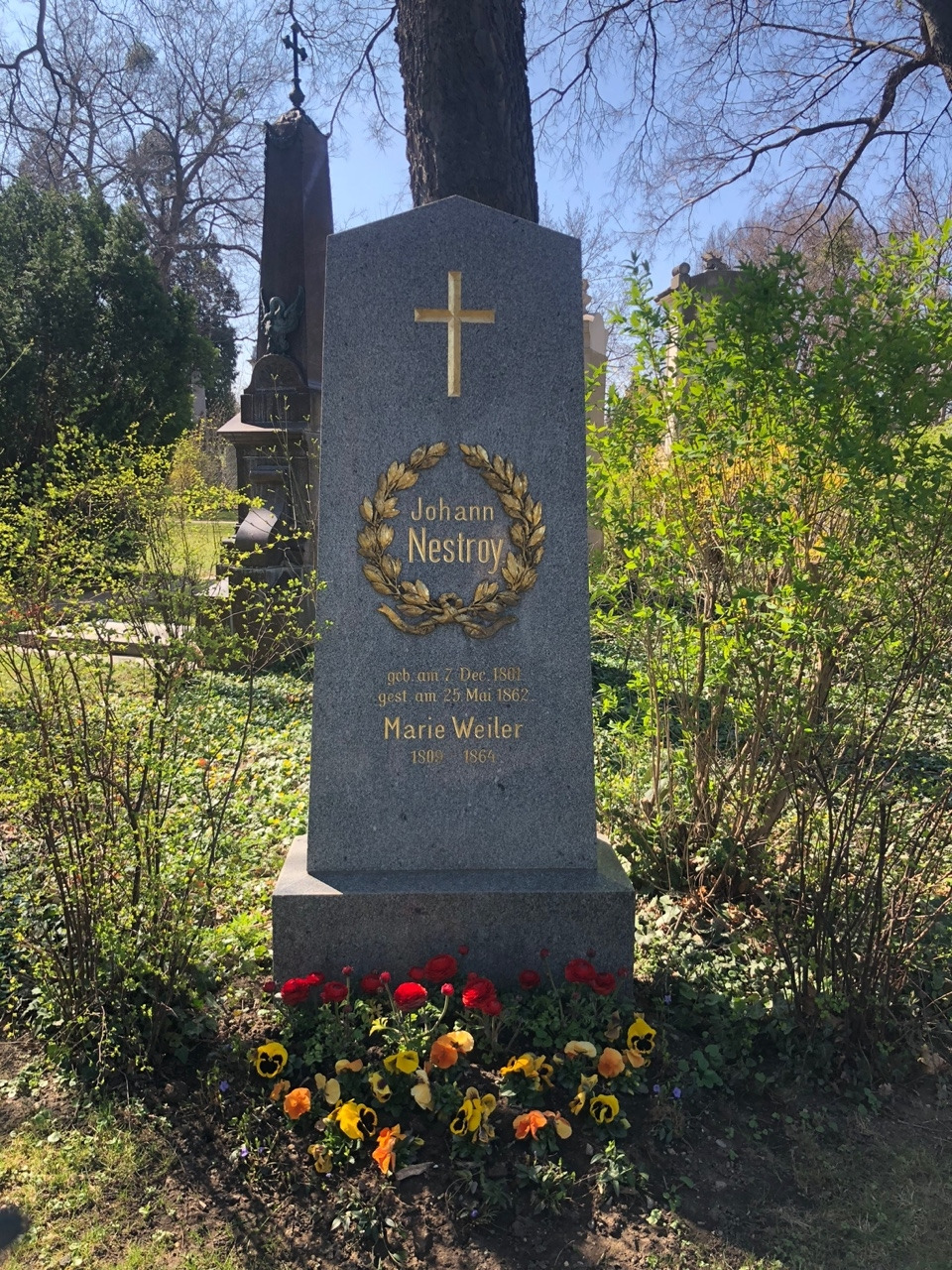 그리고 주변을 둘러보면, 비엔나에 잠깐 다니러 온 여행객이 아니라 오래 거주했던 사람은 알 법한 네스트로이라는 작가의 묘도 있음을 한번 슬쩍 보고 가도 좋다. 비엔나 U1역 중에서 한인마트가 두 곳이나 있고, 서울식당(난 서울식당 삼겹살에 소주 한잔을 애정한다)이 있는 역이 이 사람의 이름을 딴 Nestroy Platz다.