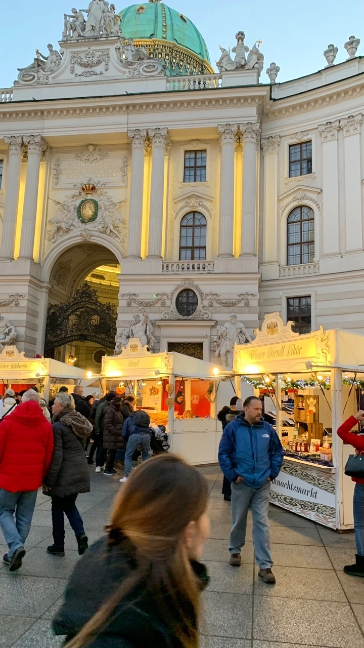 유럽 겨울의 아이콘은 단연코 크리스마스 마켓이다. 비엔나에서 가장 큰 크리스마스 마켓은 시청 앞이다. 가게와 음식점도 일품이지만 하트 조명이 달린 나무를 포함한 화려한 조명이 압권이다. 링 스트라세 건너편 왕궁극장에서 사진을 찍으면 인스타용 사진을 건질 수 있다. 지인께서 보내준 사진은 호프부르크 왕궁 뒤 쪽 미카엘 광장에 차려진 크리스마스 마켓인 것 같다. 바로크 양식의 초록색 지붕과 고풍스러운 건물 장식과 크리스마스 마켓의 조명이 잘 어울린다.
