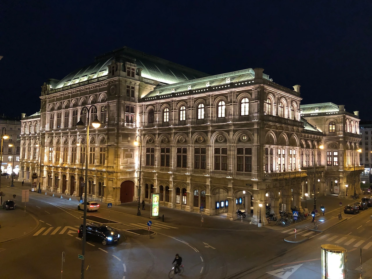 비엔나 야경이라는 단어를 떠올리면, 그라벤 거리 쪽에서 찍는 슈테판 성당 전경, 비엔나 시청사, 소피텔 18층 Das Loft에서 보는 시내 전경 등이 떠오른다. 그러나 개인적으로 비엔나 야경의 대표는 오페라 하우스라고 생각한다.